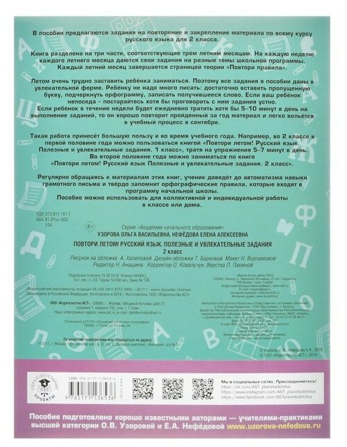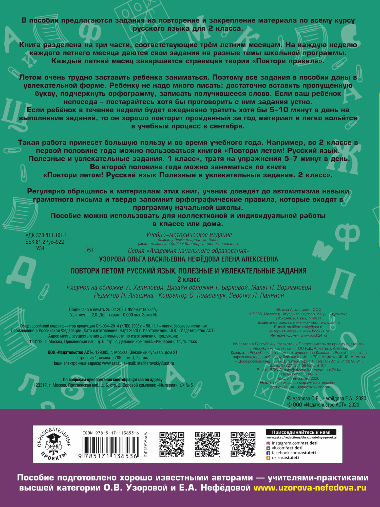 Русский язык. 2 класс. Полезные и увлекательные задания. Повтори летом! (Елена Алексеевна Нефедова, Ольга Васильевна Узорова); АСТ, 2020