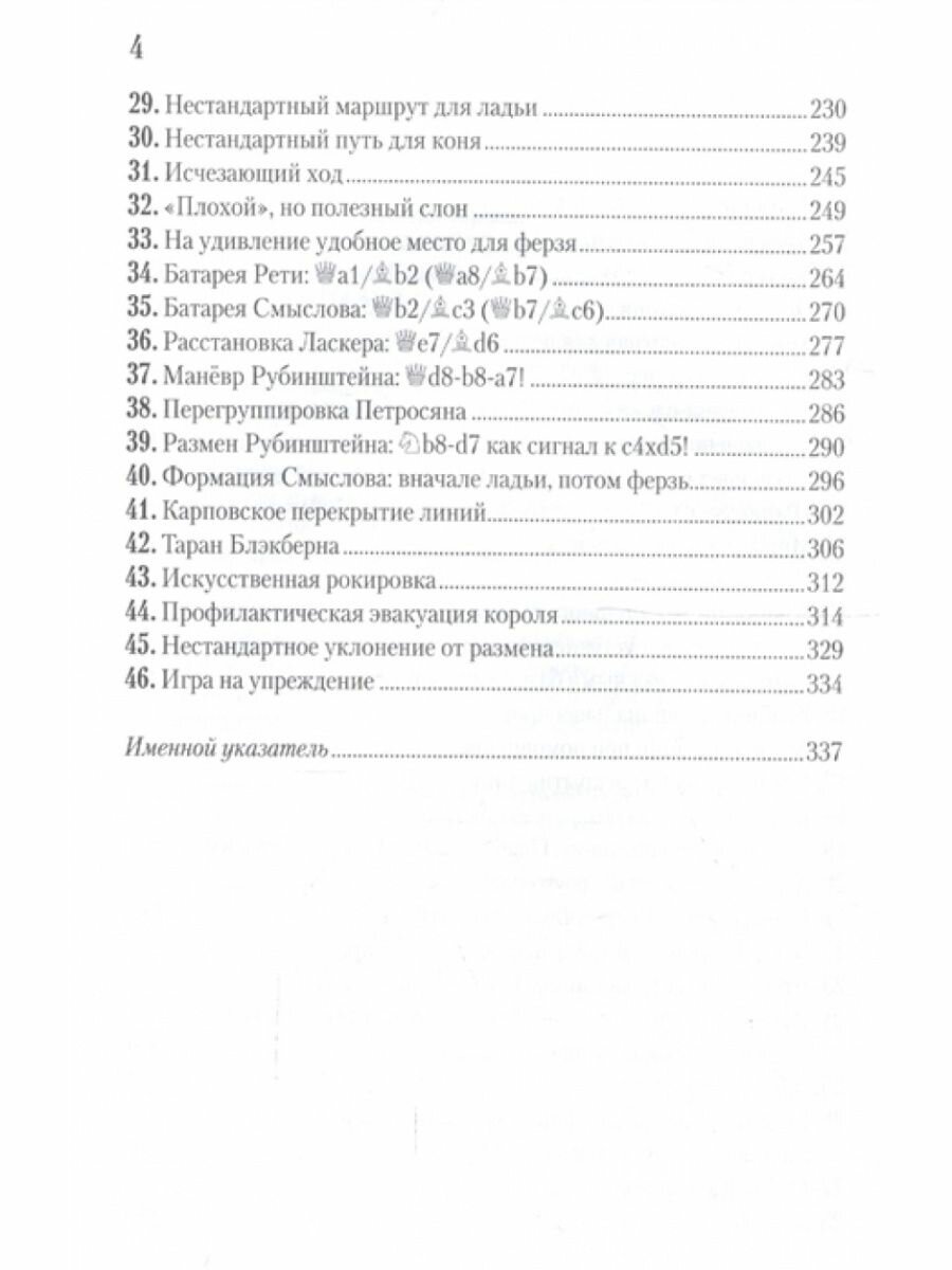 Основное достоинство предлагаемой книги и ее принципиальное отличие от других – тематизация приемов миттельшпиля. Их общее число близко к полусотне. Приемы иллюстрированы качественно подобранными примерами. В исходном виде книга выходила давно – в 2001 году. Нынешнее ее издание, нарастившее «текстовое мясо», с большим числом новых современных примеров и при удвоенном объеме, с полным основанием претендует на звание «Учебник». Помощь современных компьютерных программ позволила намного глубже проникнуть в тайны позиций, обнаружить дополнительные идеи и практически устранить аналитические ошибки. Предназначена книга для шахматистов начиная с третьего разряда и вплоть до уровня международного мастера, если не выше.