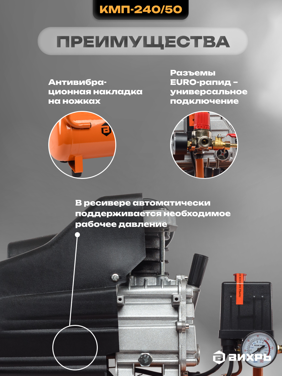 Компрессор поршневой Вихрь КМП-240/50 масляный 240л/мин 50л 74/3/8