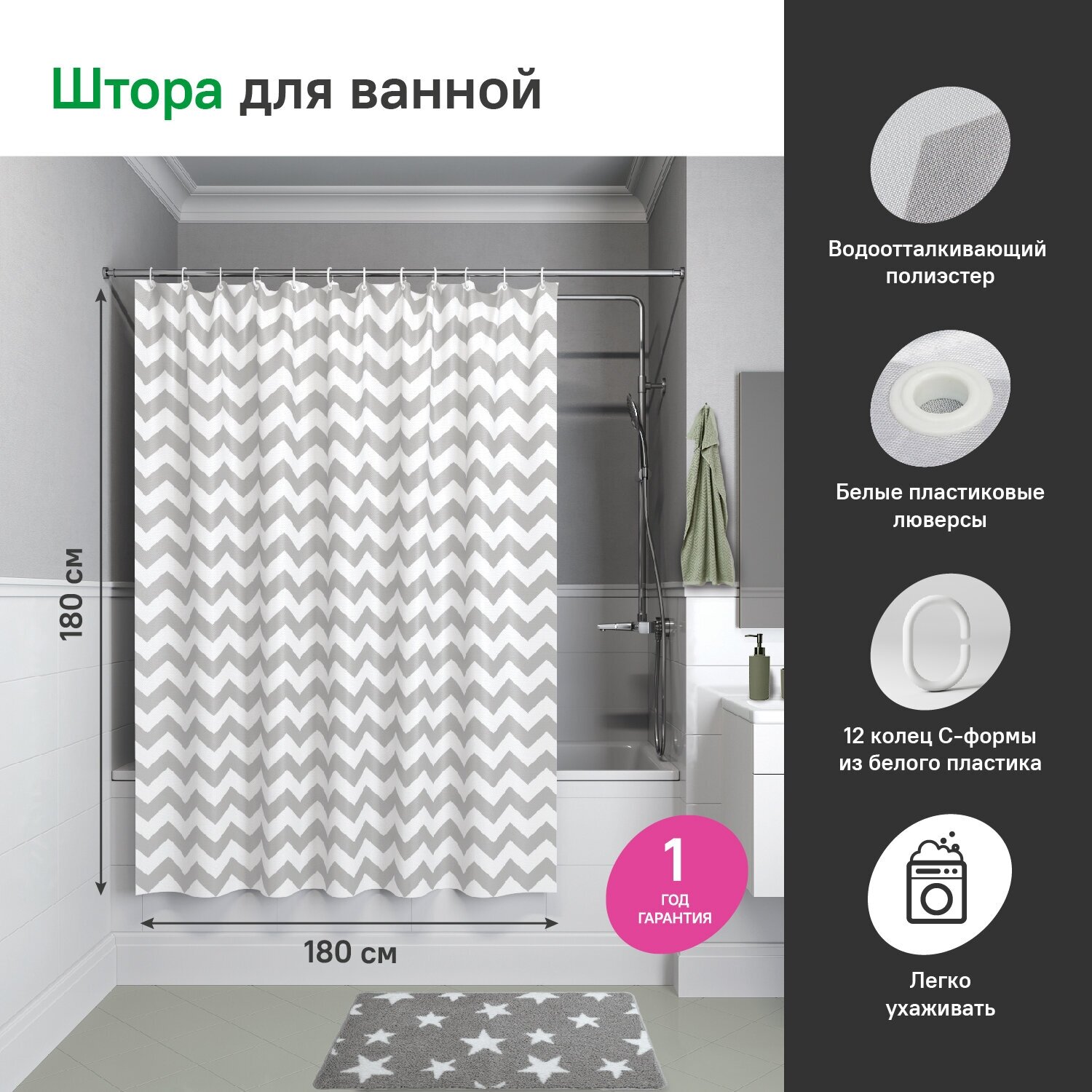 | Материал шторок для ванных | Полиэстер |
