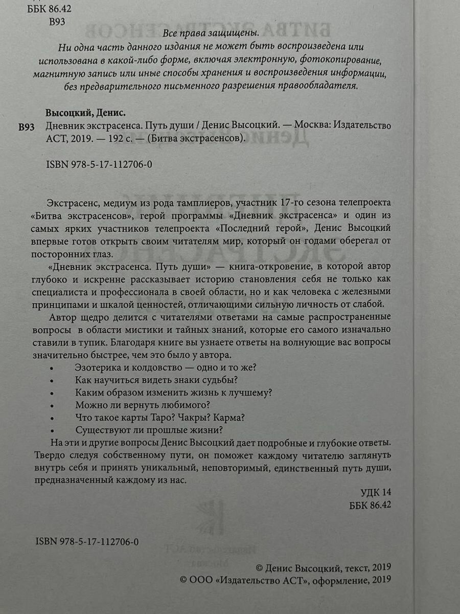 Дневник экстрасенса. Путь души (Денис Высоцкий); Издательство АСТ, 2019