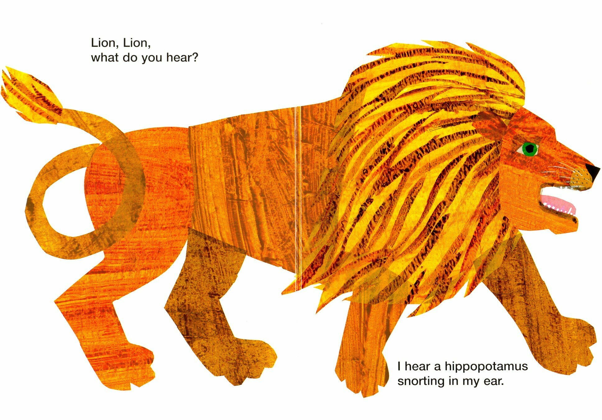 Bill Martin's playful story combining animals, colours and sounds, beautifully illustrated by Eric Carle, now appears in a chunky board-book format. A simple rhymthic text introduces the reader to a menagerie of wild animals from a roaring lion to a fluting flamingo and a trumpeting elephant.