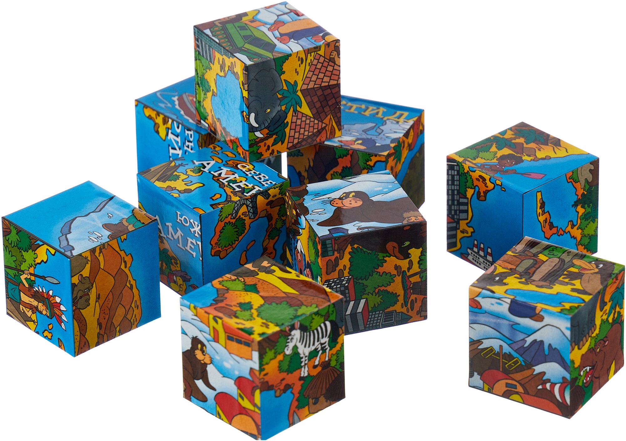 Кубики-пазл «Атлас мира» из серии «Изучаем окружающий мир» позволят ребенку в веселой развлекательной форме познакомиться с интересными географическими фактами и атласом нашего мира.