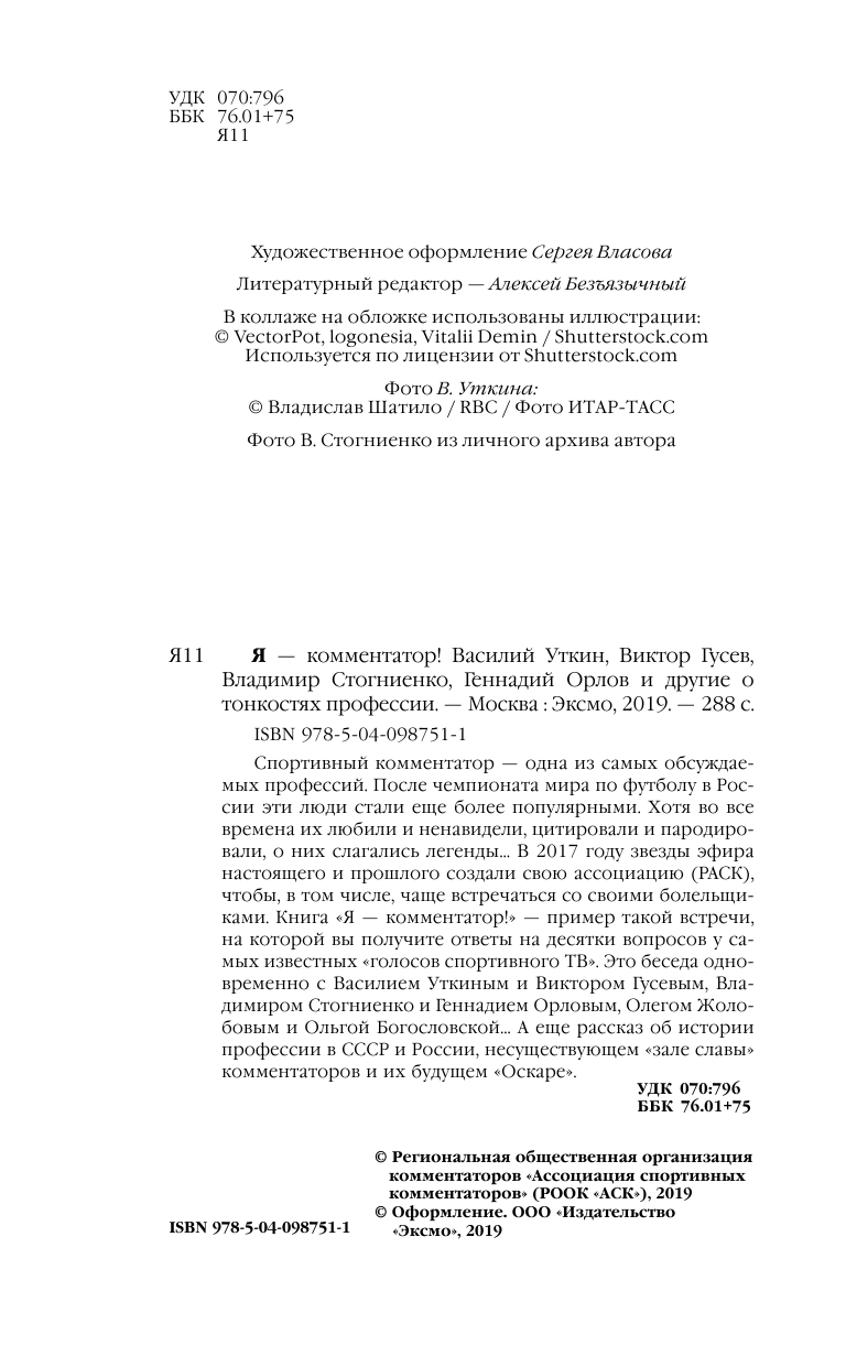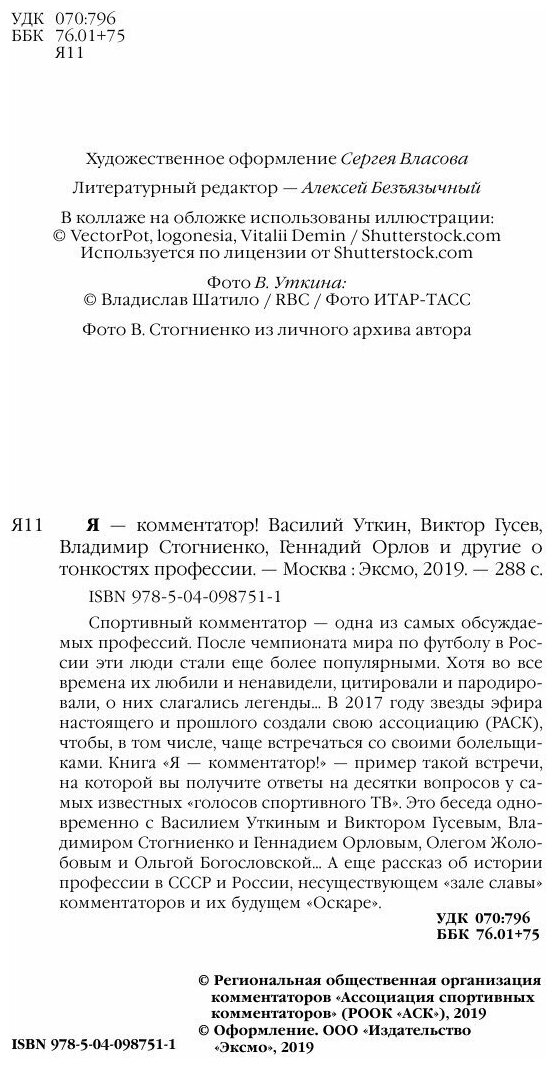 Книга: Я - комментатор (Стогниенко Владимир Сергеевич (соавтор), Гусев Виктор Михайлович (соавтор), Уткин Василий Вячеславович); Эксмо, 2019