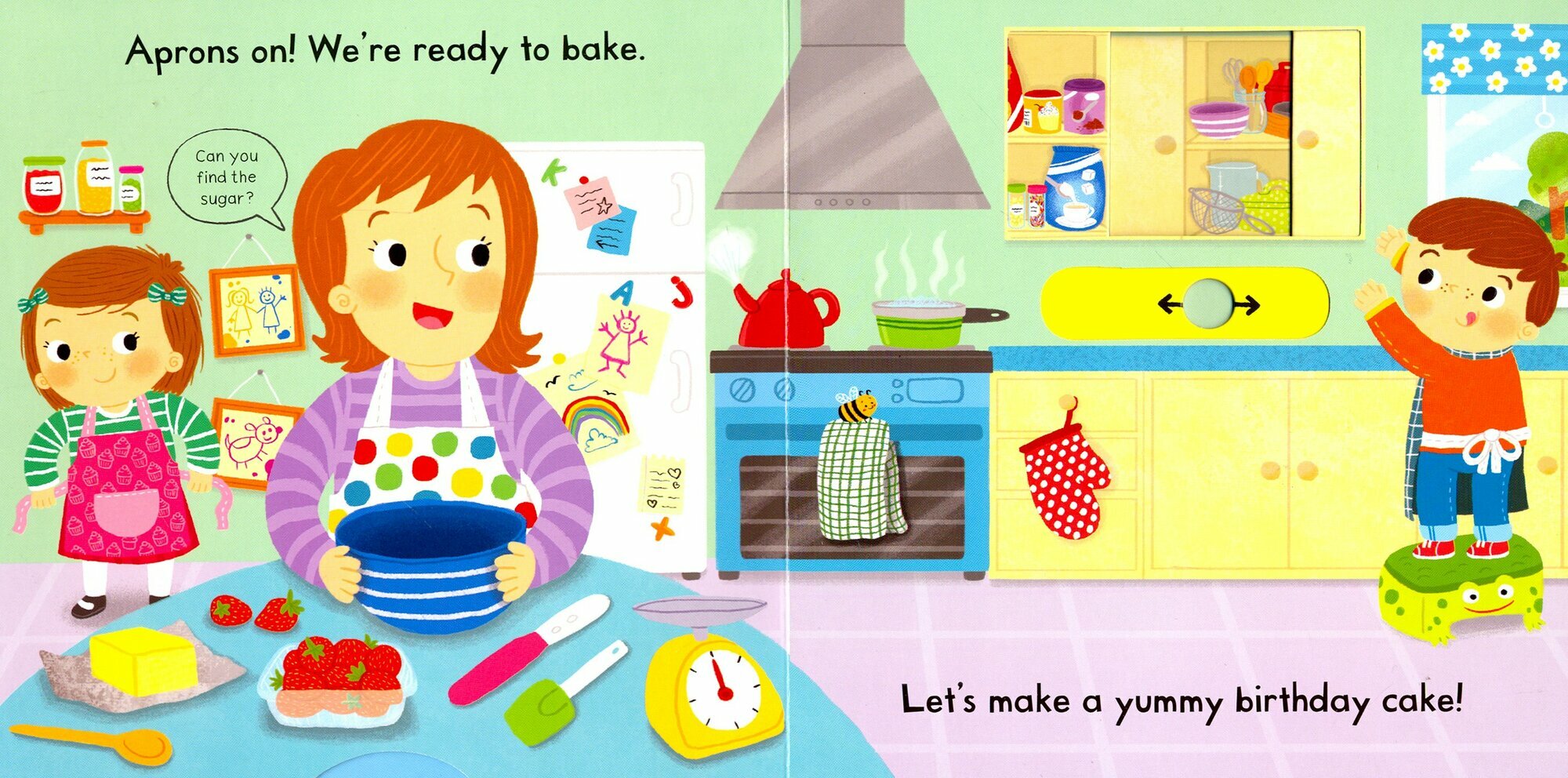 With lots to see and heaps to do, in Busy Baking children can join in by pushing, pulling and turning the tabs to bake some treats for a party. Collect the ingredients, beat the eggs and decorate the cake with lots of strawberries. Children will love playing with this bright and colourful board book with gentle rhyming text and wonderful illustrations by Louise Forshaw, which is part of the Busy Book series.