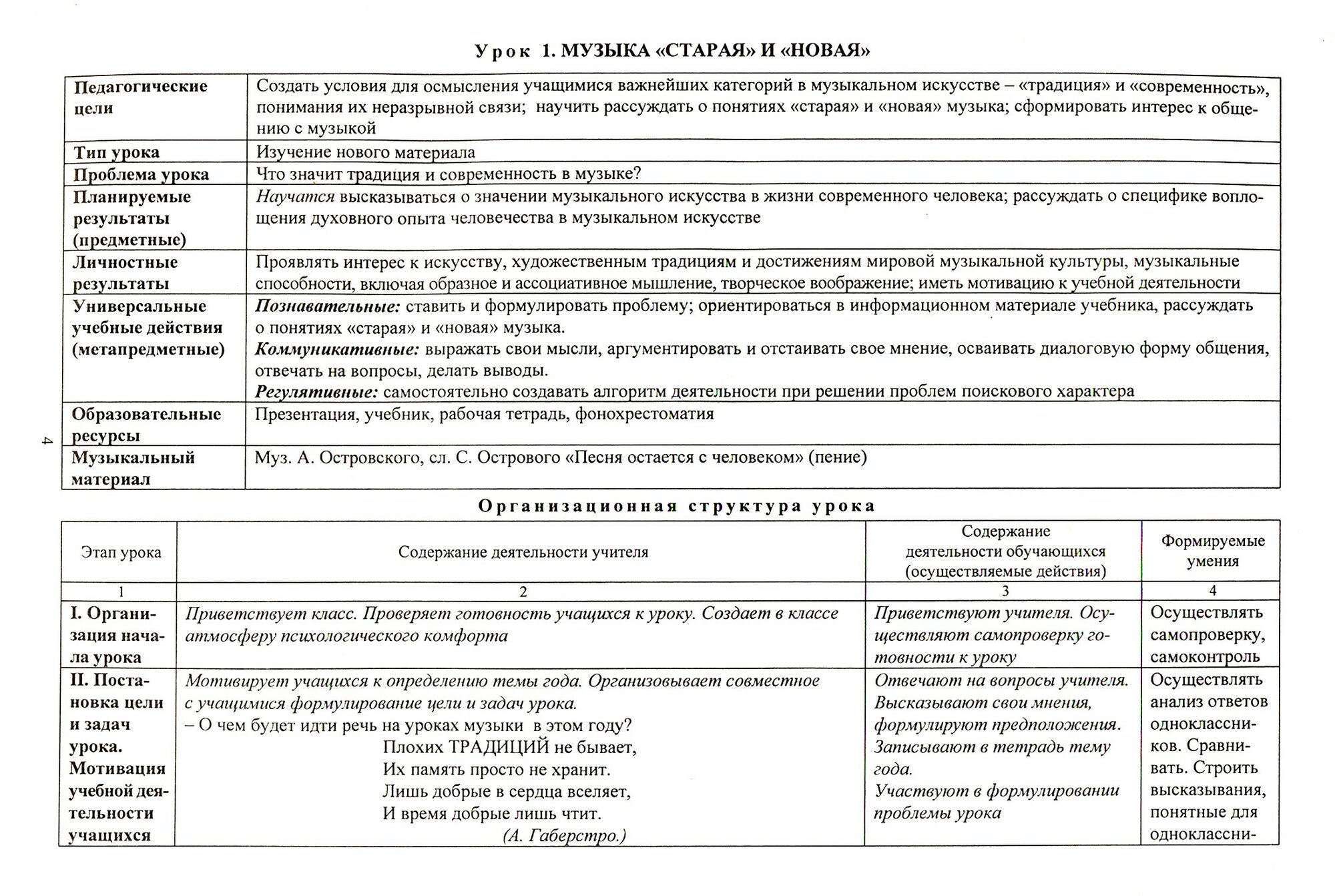 Поурочное планирование уроков музыки в 8 классе