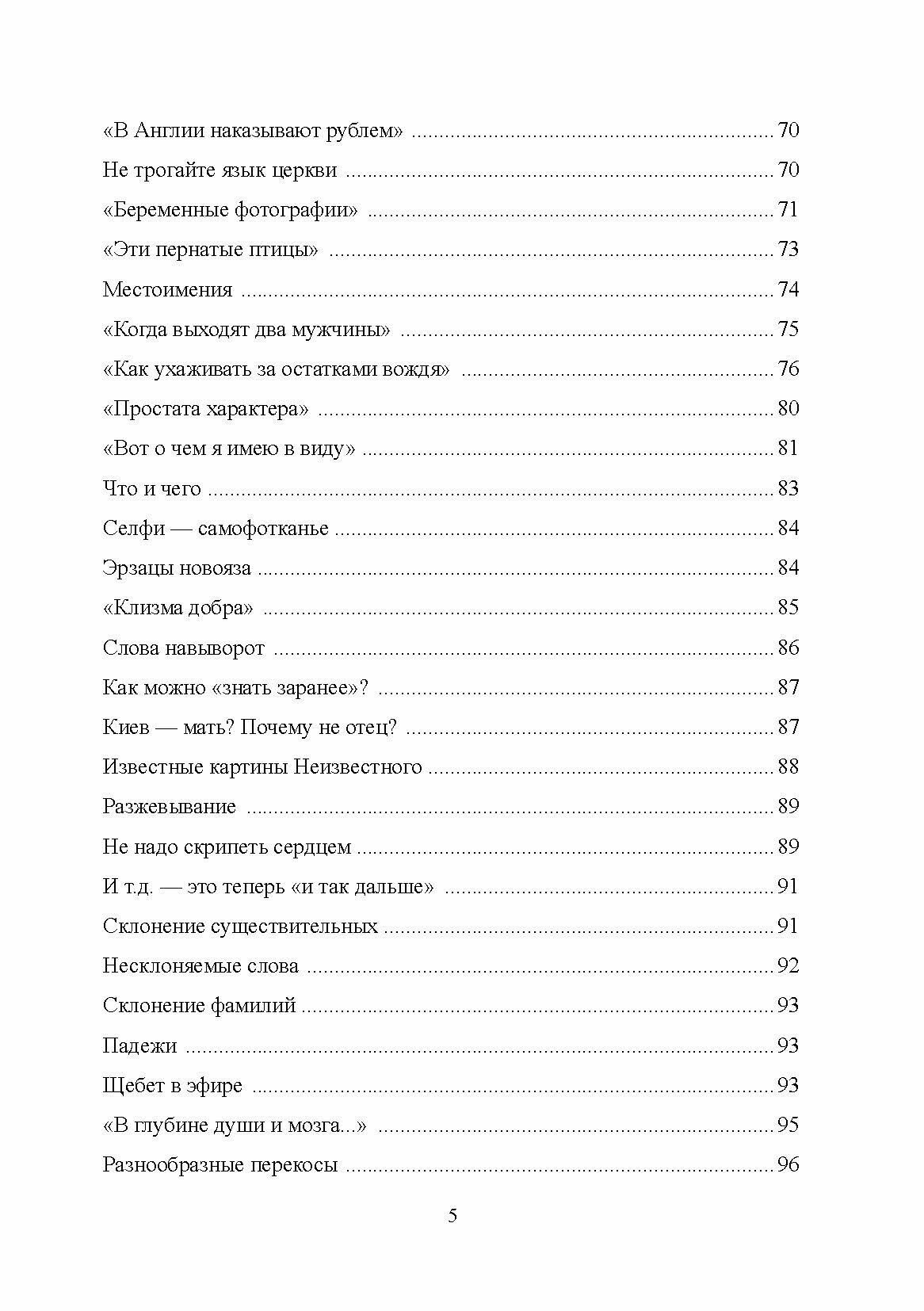 Автор представляет обширную коллекцию всевозможных ляпов - речевых и письменных ошибок, допускаемых журналистами, политиками, артистами во время выступлений на радио и по телевидению. Иными словами, автор показывает, как нельзя говорить и писать по-русски, анализирует, к чему приводит небрежное отношение к родному языку.
