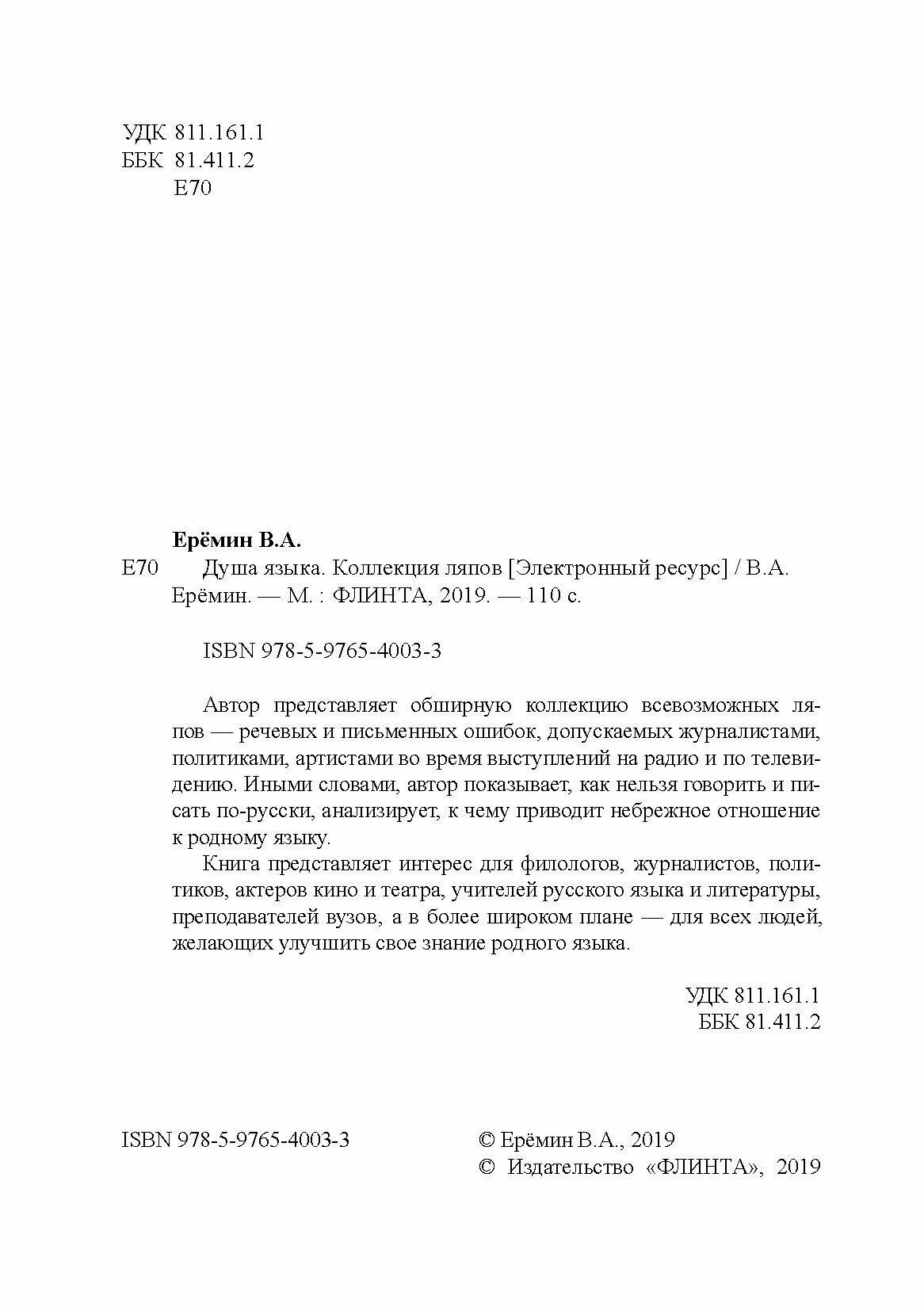 Душа языка. Коллекция ляпов (В. А. Еремин); Флинта, 2019