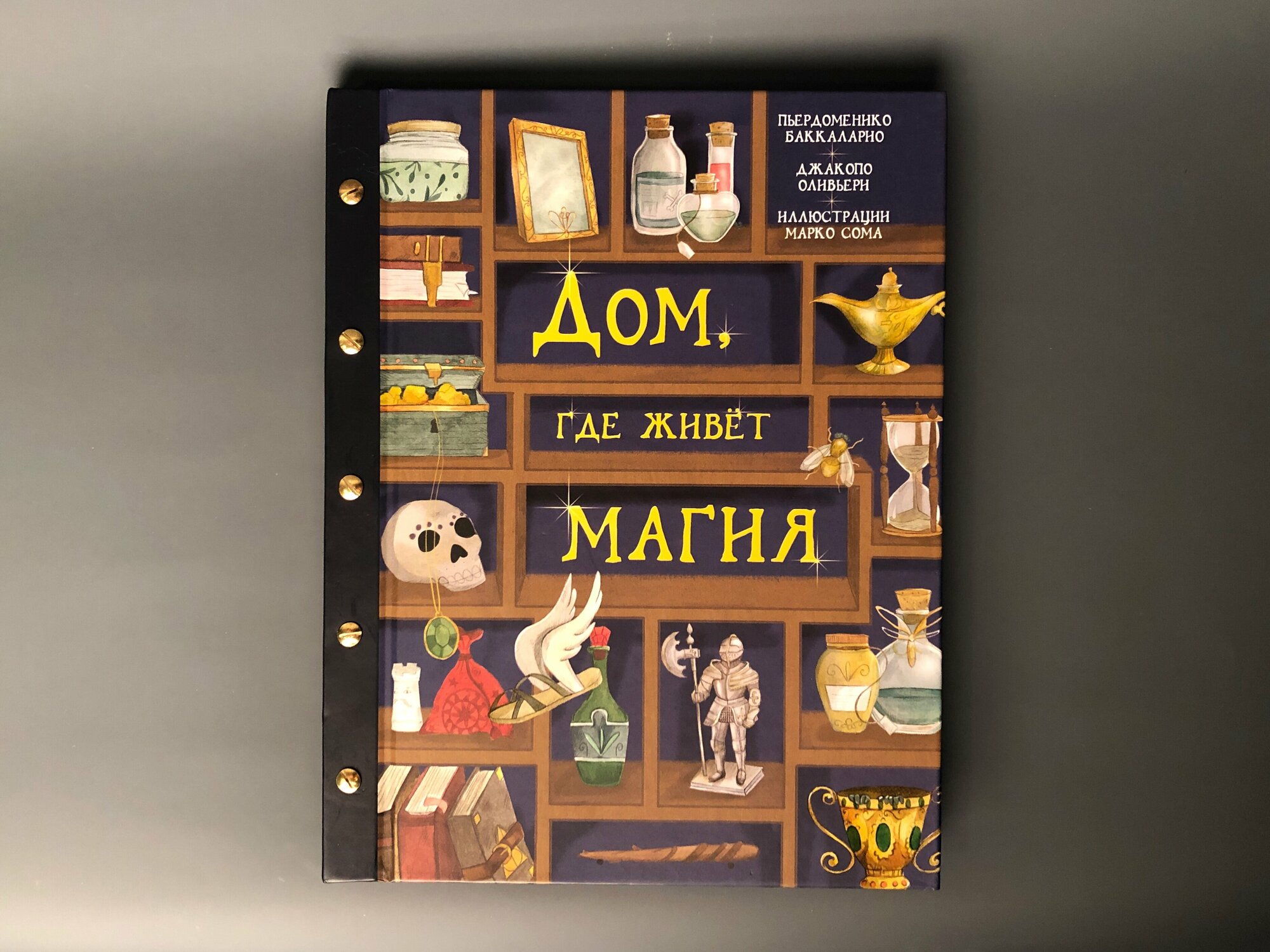 Отличный подарок для любителя фантастики (независимо от возраста)! Это что-то вроде иллюстрированной энциклопедии волшебных вещей из самых разных книг и фильмов - от древнегреческих мифов и сказок со всех континентов до произведений Толкиена, Брэдбери и даже Стивена Кинга. Только расположены они не по хронологии и не по авторам, а по "назначению": как хранил бы их человек, который ими пользуется, если бы все эти предметы существовали в действительности, и благодаря этому они как будто оживают.