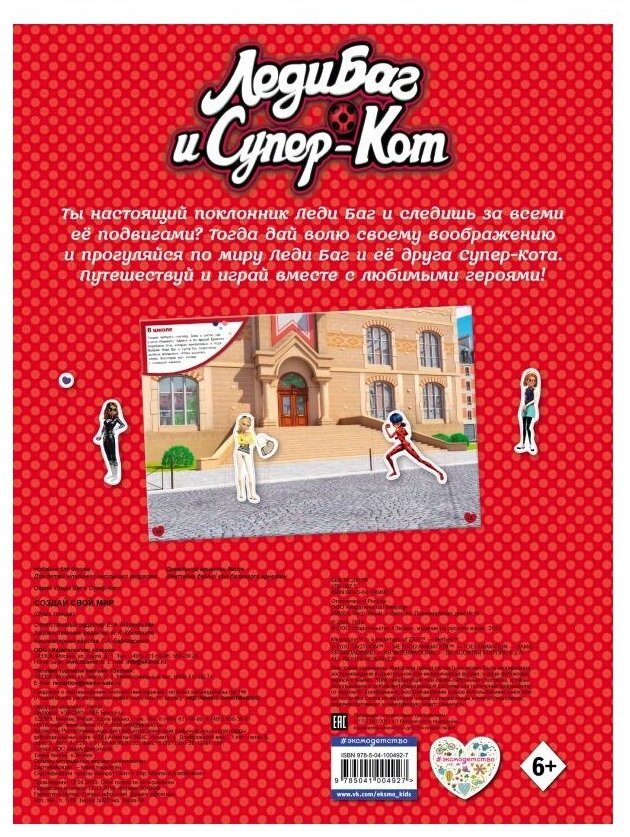 1. Воссаздавай сцены из мультсериала и путешествуй по улицам Парижа вместе с Леди Баг, Супер-Котом и их друзьями. 2. Это не просто книга с наклейками. Внутри всех поклонников мульсериала ждут интересные игры и головоломки. Можно играть одному, а можно в веселой компании. 3. Отличный подарок для маленьких мечтательниц