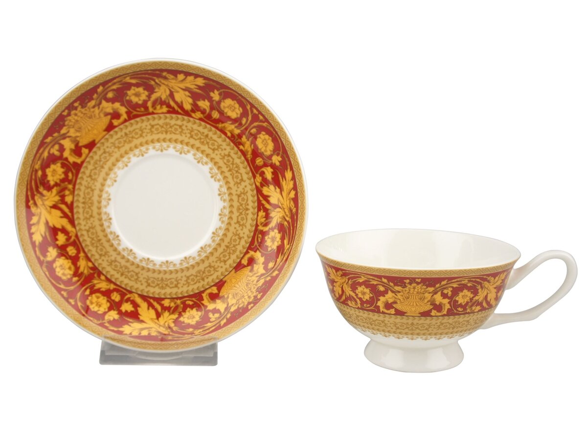 Наборы классических чайных пар французской студии Top Art это настоящее украшение для вашей чайной церемонии. Чайные пары изготовлены из тонкостенного костяного фарфора высшего качества, отличающегося необыкновенной прочностью, прозрачностью и небольшим весом.Торжественная, роскошная чайная пара Версаль Красное Золото для ценителей классики и благородства. Изящная чашка на 180мл позволит вместить оптимальное количество любимого горячего напитка, ароматного чая, кофе, какао, молока или горячего шоколада. Это современная и универсальная чашка с блюдцем для напитков во время завтрака, обеда или ужина в кругу семьи или друзей, а также она всегда будет незаменима при работе в офисе. Посуду можно использовать в СВЧ печи и мыть в посудомоечной машине.
