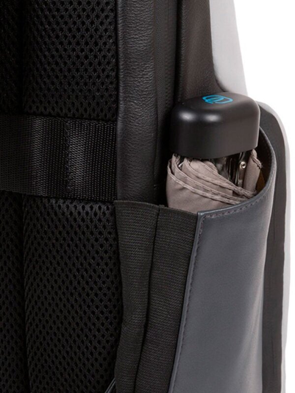Наиболее популярная модель кожаного мужского бизнес-рюкзака из коллекции Piquadro Urban. Рюкзак изготовлен из мягкой структурной телячьей кожи, фурнитура черненая, матовая. Имеет одно основное отделение с отсеком для 14 дюймового ноутбука и планшета. На передней части рюкзака расположен карман на молнии с отсеками для телефона и письменных принадлежностей. По бокам расположены карманы на молнии для бутылки и зонта, на задней части рюкзака предусмотрена планка для ручки чемодана. Рюкзак имеет небольшой вес, всего 896 грамм и оптимальные габариты, благодаря чему он идеально подходит для ежедневного использования, как для работы, так и для повседневных нужд.
