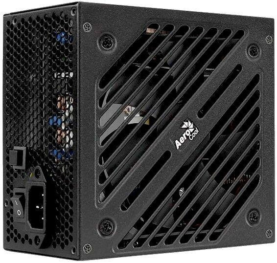 Блок питания Aerocool черного цвета, ATX, мощность 600W, стандарт 80+, коррекция мощности APFC, питание МП (20+4pin), питание видеокарты 2х(6+2) pin, 5xSATA, размер вентилятора 120мм, цвет подсветки многоцветная, RTL