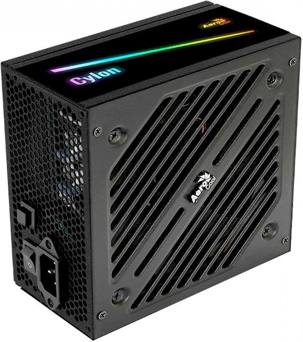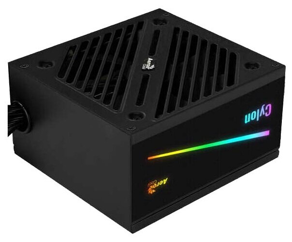 Блоки питания Aerocool Блок питания Cylon оснащен светодиодной подсветкой RGB, который придает системе особенно стильный вид. Имеется 13 различных эффектов подсветки, которые можно переключать специальной кнопкой. Бесшумный вентилятор диаметром 12 см в черном корпусе с оптимизированной системой регулировки скоростей в зависимости от температуры. Вентилятор работает на минимальной скорости (менее 800 об/мин) до достижения 60% нагрузки при температуре окружающей среды 25 С.