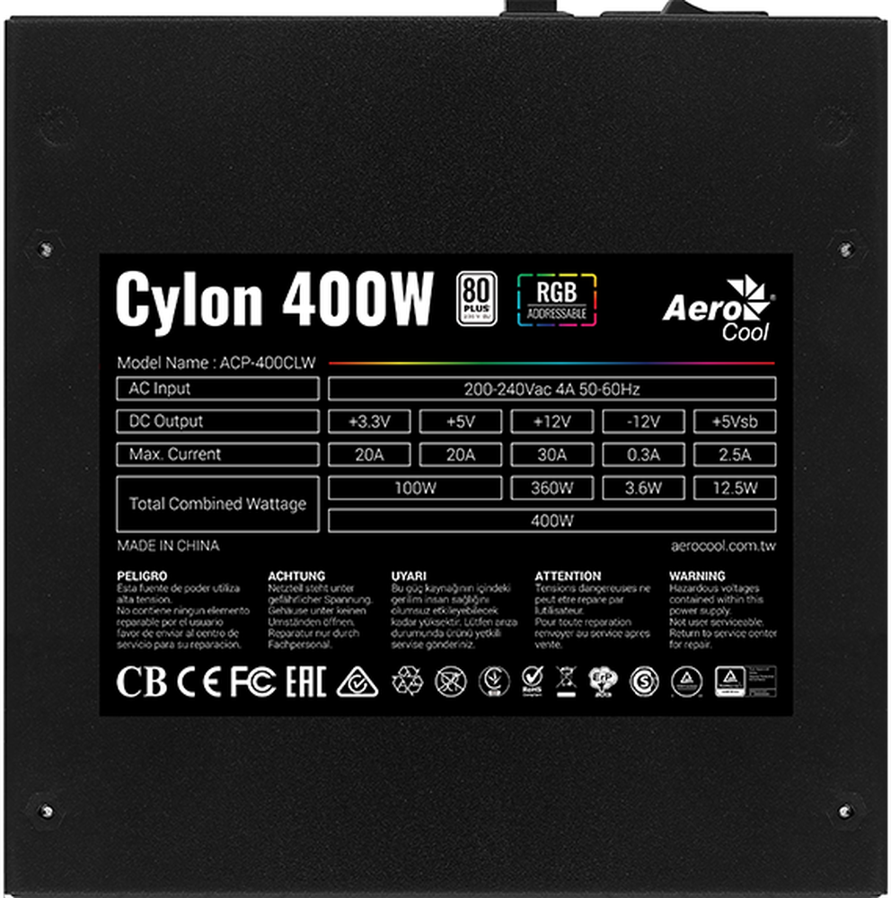 Блок питания AEROCOOL 400Вт 120мм черный retail CYLON 400