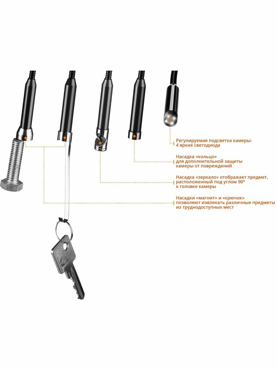 Видеоскопы ЗУБР позволяют быстро и качественно произвести осмотр систем отопления, вентиляции и кондиционирования, проверить элементы находящиеся в труднодоступных местах автомобилей и другой техники, не прибегая к частичному или полному ее демонтажу.
