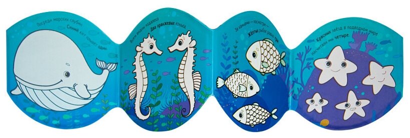 Почему книга «Рыбка» серии «Волшебные купашки-гармошки» идеально подходит для самых маленьких детей? В ней есть все, что так нравится малышам: очаровательные животные, крупные яркие картинки и веселые двустишия, которые познакомят ребенка с цветами и счетом до 5. А еще эта книжка создана из легкого и безопасного неропомокаемого материала, поэтому ее смело можно пробовать на зуб, играть с ней во время купания в ванной, поездки или прогулки.