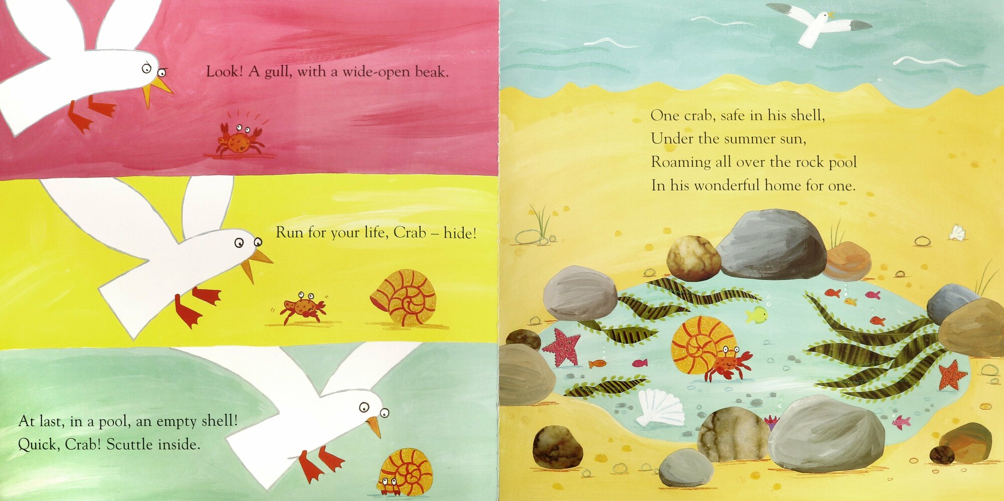 When Crab finds a new shell, he doesn't want to share it with anyone - especially not a blobby purple anemone and a tickly bristleworm. But life in the rock pool proves tougher than Crab thinks and he soon finds he needs his new housemates.