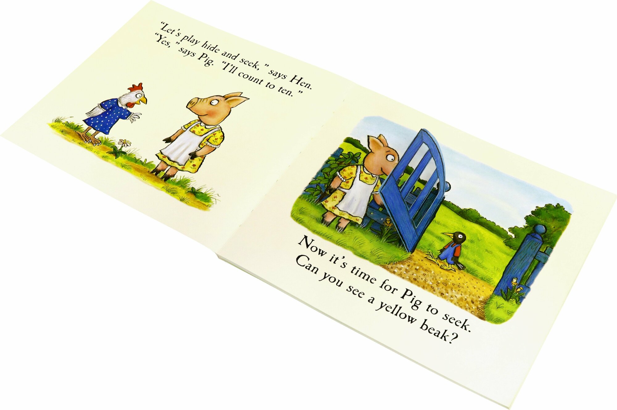 Pig and Hen are playing hide-and-seek. But where on earth could Hen be? Lift the flaps and help Pig find out where she is hiding. Then join Bear as he delivers letters to his friends Frog, Squirrel and Mole - and lift the flaps to see Bear's special birthday surprise!