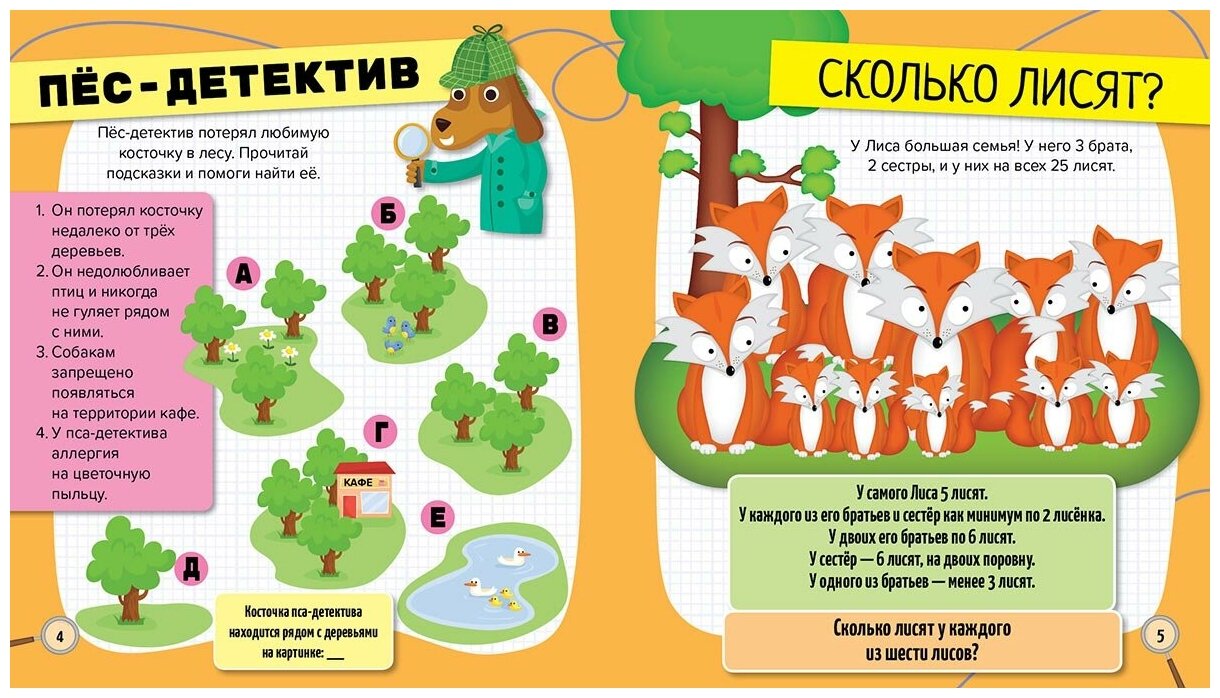 Очень интересная книга с заданиями. Здесь можно найти и задания на поиск, и на счет, и даже разгадать шифр. Мне только немного не понятна возрастная категория книги. Я её купила для дочки первоклассницы. Некоторая часть заданий её уровня, но есть дроби и проценты, тут уж придется помогать или оставлять на будущее.