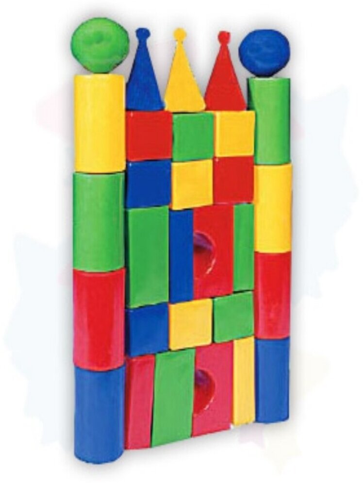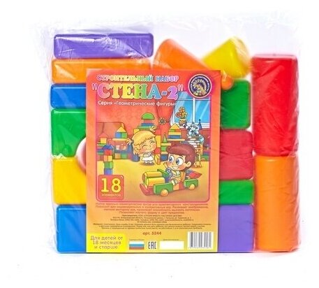 Строительный набор «Стена - 2» содержит в себе тридцать деталей различной геометрической формы. Детали изготовлены из яркого пластика, они пустые внутри и поэтому очень легкие. При возведении башни из таких строительных элементов малышу нужно быть внимательным, ведь детали не имеют никаких креплений и постройка может легко обрушиться. Таким образом игрушка научит ребенка понятиям о равновесии и центре тяжести.