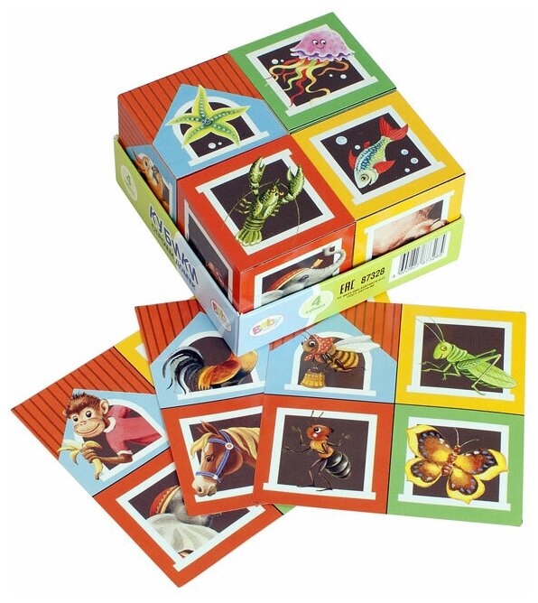 Кубики 4 из серии «Baby Step» рекомендованы детям от 1 года.В комплект с кубиками входят специальные красочные вкладыши, по которым ребенок без труда освоит сборку картинки.Играя с кубиками, малыш тренирует мелкую моторику руки, развивает логическое мышление, образное восприятие, зрительную память.