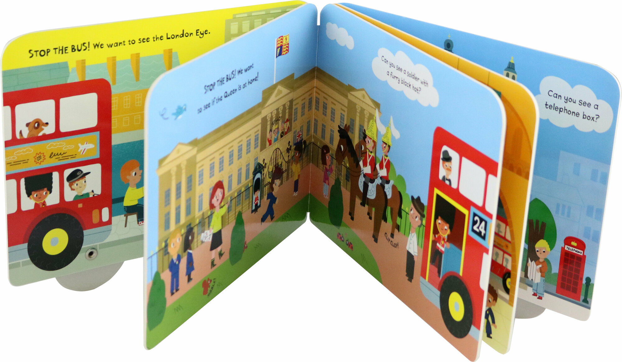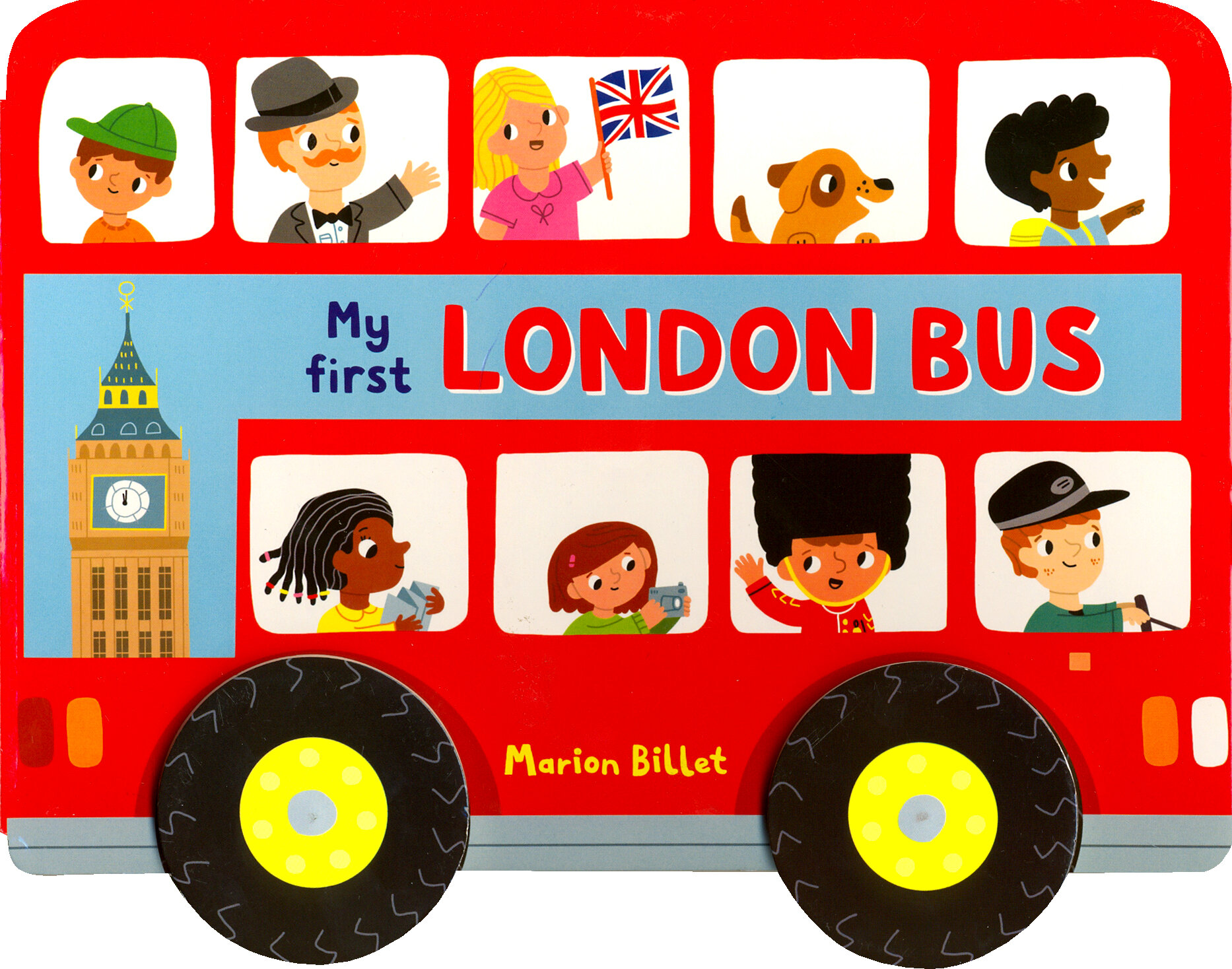 In My First London Bus follow the red bus around the streets of London visiting the sights, with an extra detail to spot on every page. Then close the book and push it along on its four moving wheels and go on your own journey! With bold, bright illustrations by the wonderful Marion Billet, it's the perfect way for young visitors to London to remember their trip.