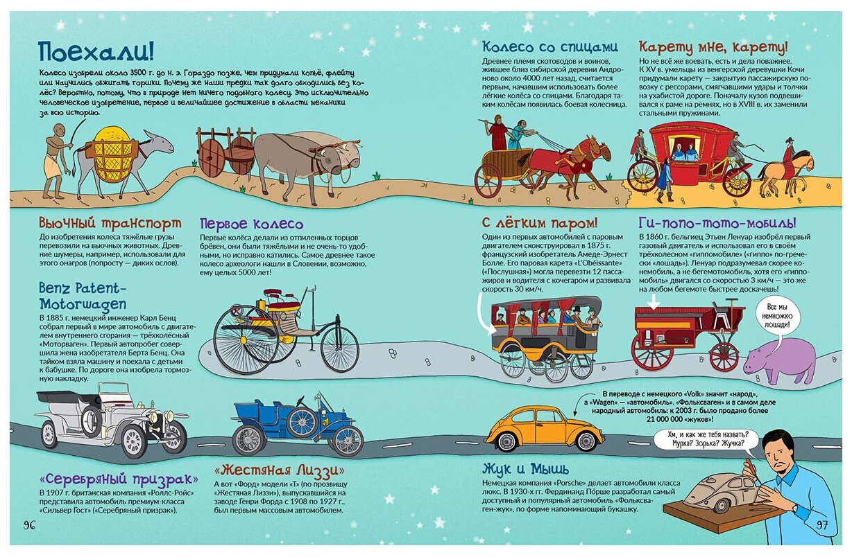Все вещи, которые нас окружают, были кем-то когда-то придуманы. Лифт, часы, жвачка, шифровальная машина, картофельные чипсы, социальная сеть, печатный станок и одноколёсный велосипед — всё это не просто «дары цивилизации», а результат труда многих замечательных людей. Обо всех крупных и маленьких открытиях и об их создателях ты и узнаешь из этой книги. Автор не поленился и даже включил в книгу, не менее интересные для читателя, сумасшедшие и дурацкие изобретения, а также истории о чудаковатых гениях.