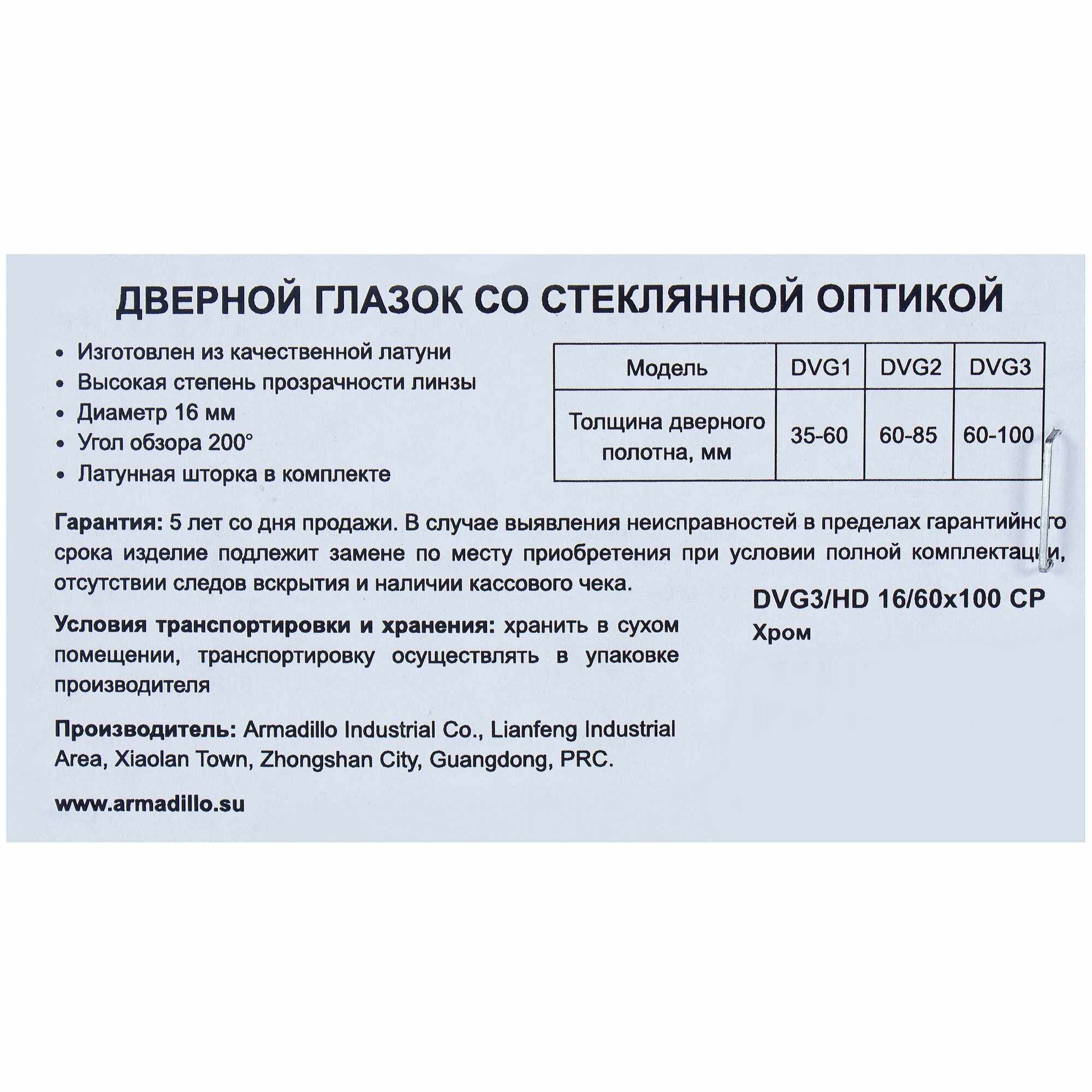 Модель: Глазок дверной Armadillo DVG3 стеклянный хром d16 мм