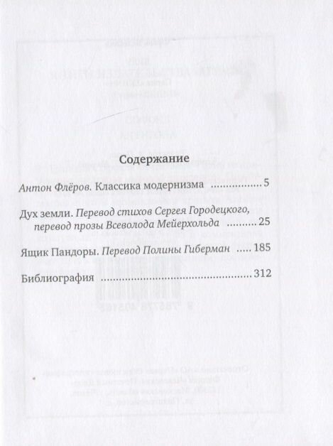 Две пьесы немецкого драматурга Франка Ведекинда (1964-1918) под общим названием "Лулу" ("Дух земли" и "Ящик Пандоры") - один из признанных шедевров литературы европейского модерна. Они вывели на сцену образ "роковой женщины", которая доводит до гибели всех влюбляющихся в нее мужчин. Эти пьесы были опубликованы впервые на русском языке в 1908 году в переводах Сергея городецкого (Пролог), Всеволода Мейерхольда ("Дух земли") И Полины Губерман ("Ящик Пандоры") и впоследствии использованы Мейерхольдом для сценической постановки. Предисловие Антона Флерова описывает фигуры Ведекинда и Мейерхольда в связи с проблемами "Лулу" и позволяет яснее очертить разнообразные смыслы сложного, многослойного произведения.