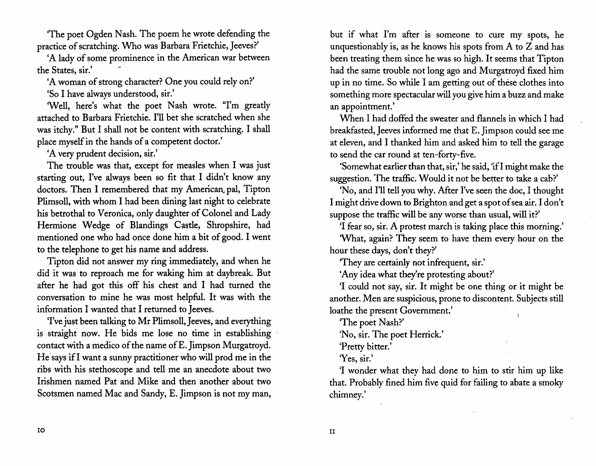 Wooster withdraws to the village of Maiden Eggesford on doctor's orders, to "sleep the sleep of the just." Only the presence of the irrepressible Aunt Dahlia shatters the rustic peace.