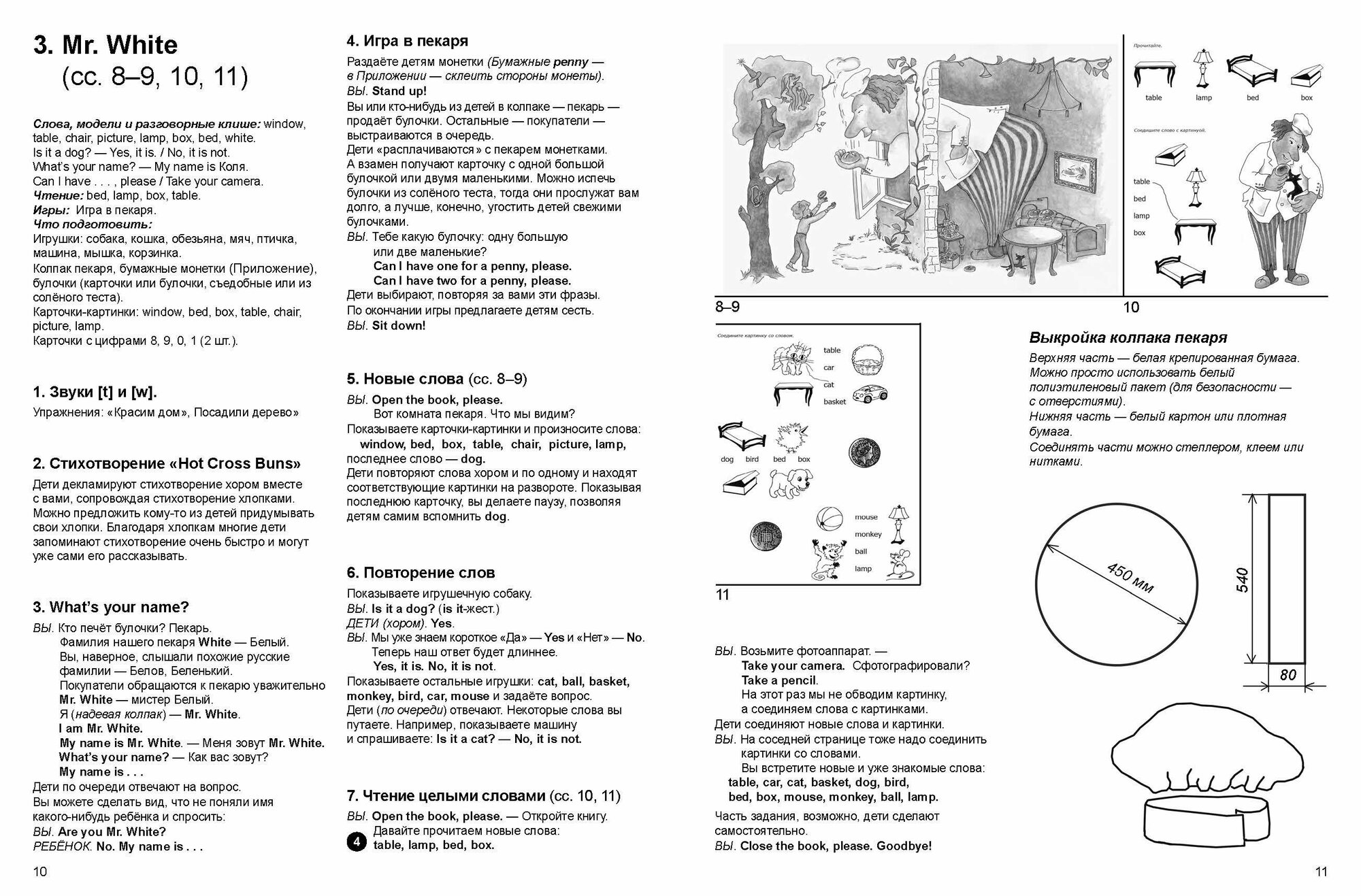 .50 занятий по 30 минут дают возможность поиграть и посмеяться и при этом заложить основы говорения на английском языке, понимания речи на слух и чтения. Словарь (300 слов) включает темы, интересные и близкие маленьким детям. В книге привлекательные смешные картинки, простые стихи, сказки, веселые песни и рецепты английских лакомств. HelloBook включает в себя аудиоприложение, которое можно скачать или слушать на сайте.