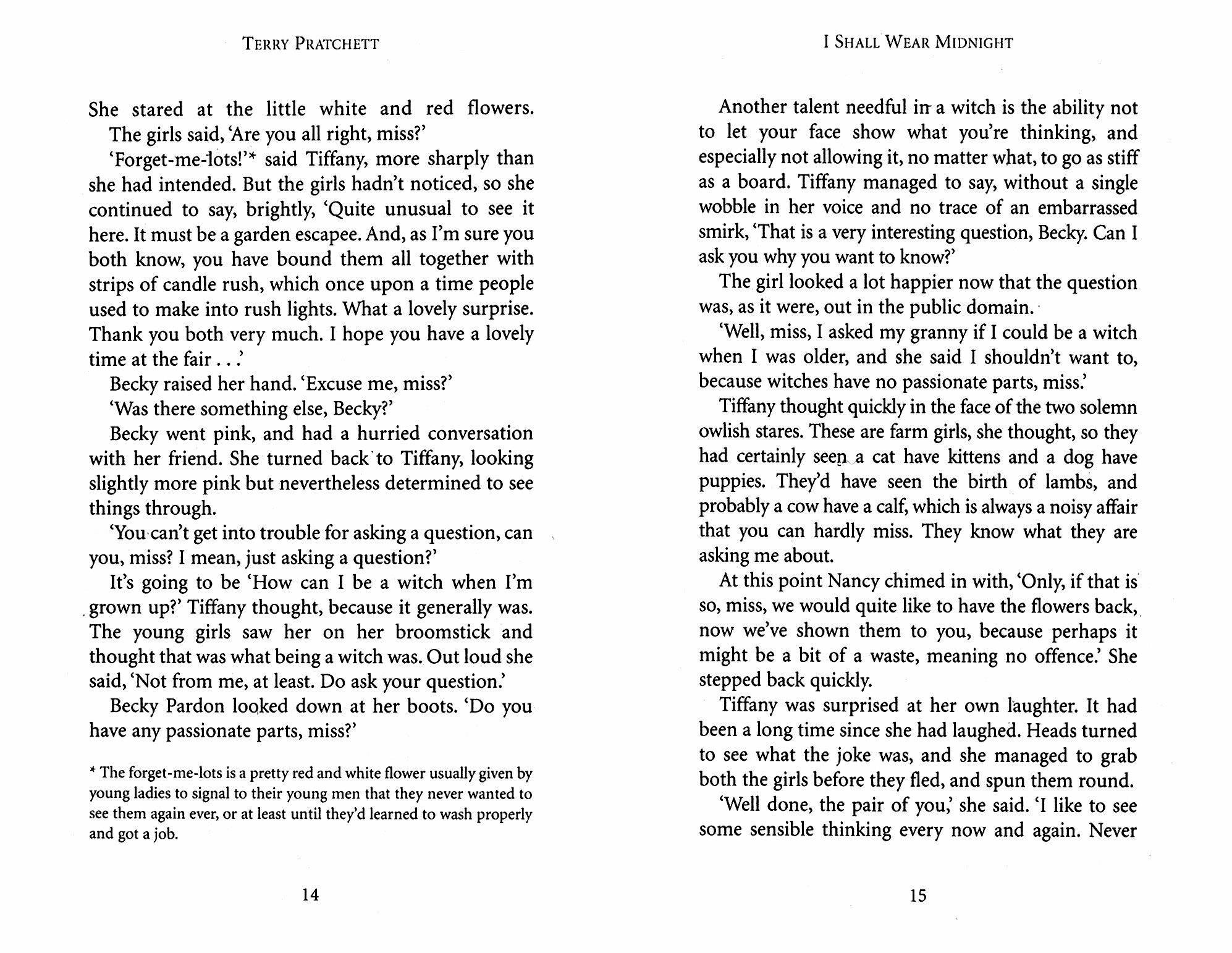 A fabulous Discworld title filled with witches and magic and told in the inimitable Terry Pratchett style, I Shall Wear Midnight is the fourth Discworld title to feature Tiffany and her tiny, fightin', boozin' pictsie friends, the Nac Mac Feegle (aka The Wee Free Men).