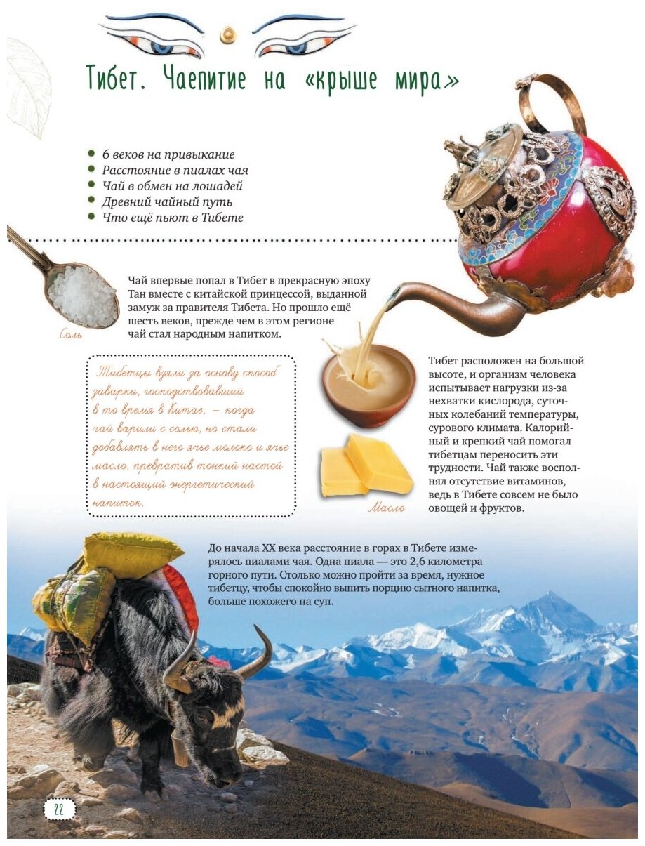 Я пью чай каждый день и не по разу. А вы? Казалось бы, чай он и есть чай. Вполне обыденная для многих вещь. Но так ли все просто? На самом деле это один из самых непростых напитков с очень богатой историей и культурой. Чай окутан легендами, а его история уходит корнями настолько глубоко в века, что никто однозначно и не скажет, кто и когда первый раз заварил этот напиток. И вот, решив разобраться в чайных вопросах, я приобрёла данную энциклопедию. А там и легенды, и истории, и разновидности, и церемонии, и различные культуры употребления этого напитка. И всё это снабжено большим количеством красочных иллюстраций. Эта книга рассказывает о чае столько всего интересного, нового. Можно и историю по книге изучать и разные страны с особенностями их развития.