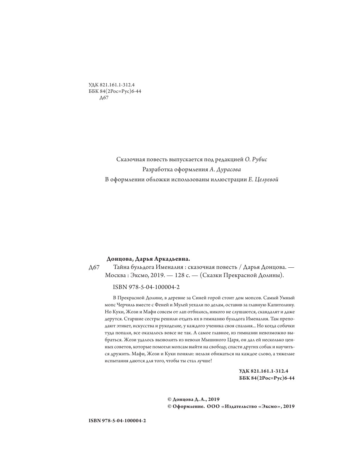 Книга: Тайна бульдога Именалия (Дарья Донцова); Эксмо, Редакция 1, 2019