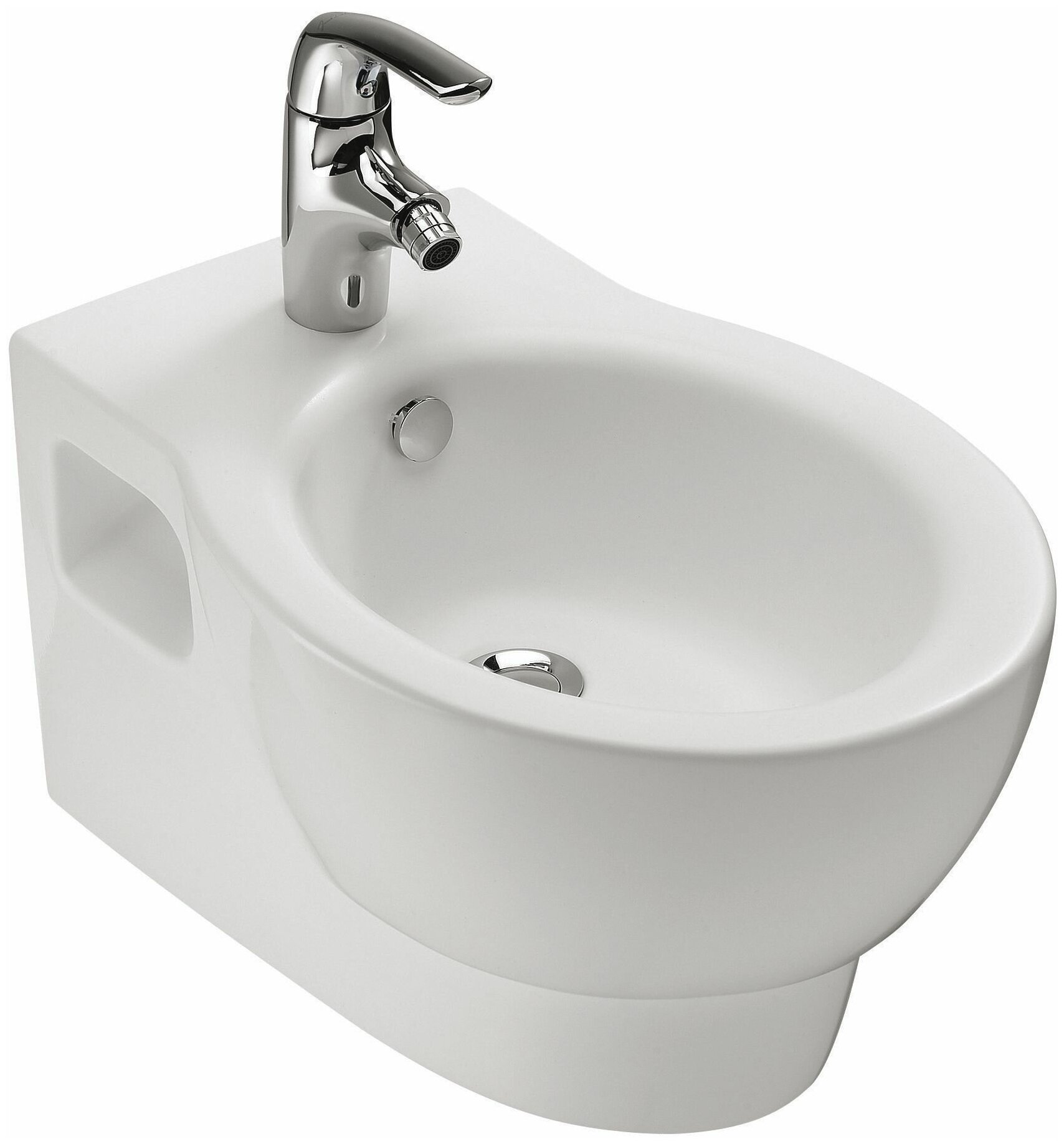 Подвесное биде (54 х 36 см) с одним отверстием для смесителя и хромированной заглушкой для перелива воды Е4061.