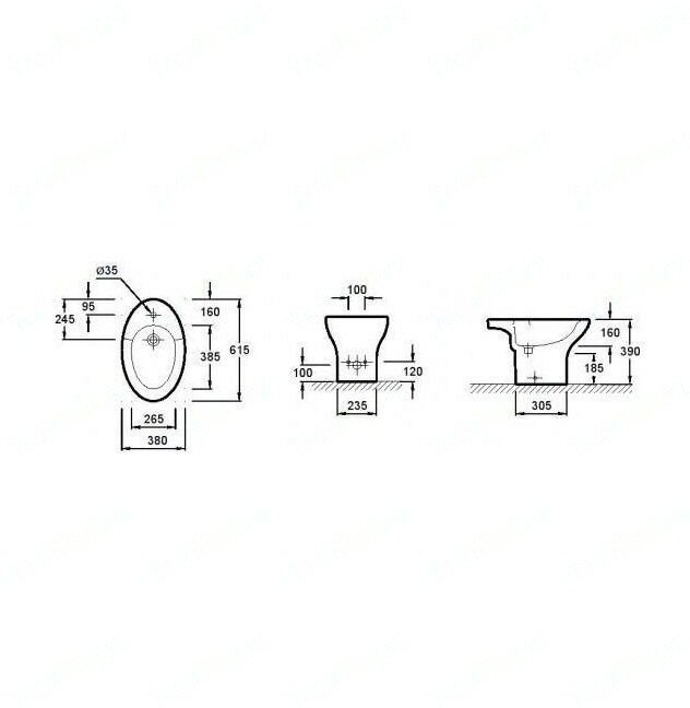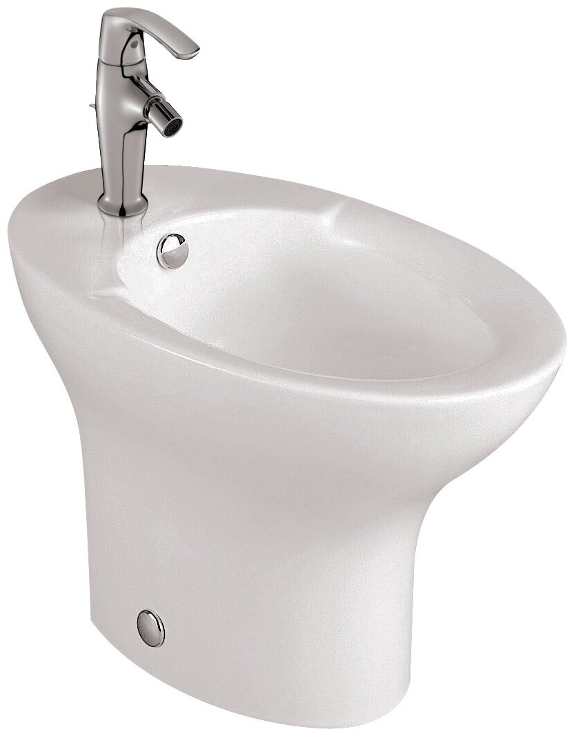 Напольное биде (61,5 х 38 см) с хромированной заглушкой для переливного отверстия Е4061. Одно сквозное отверстие, два размечено. Цвет белый