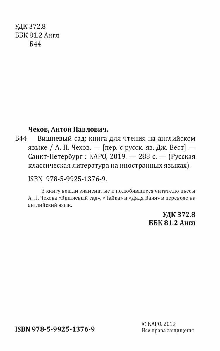Сервис сравнения цен СкидкаГИД предлагает сравнить цены на товар «Книга: The Cherry Orchard / Вишневый сад. Книга для чтения на английском языке (Антон Павлович Чехов); КАРО, 2019»