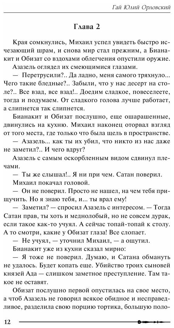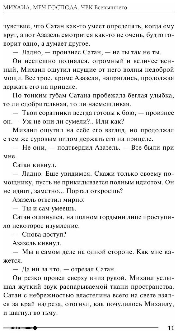 Да, действительно, первые книги читались очень интересно. А в последней разочаровался. Михаил, представленный в предыдущих книгах как тупой салдафон, без чувства юмора, в последней отжигает шутками Азазеля, разговаривает как человек, проживший всю жизнь на земле. Не логично. Разочарован. Как-то сразу потерялся интерес к книге, такое ощущение что книгу пишет кто-то другой.