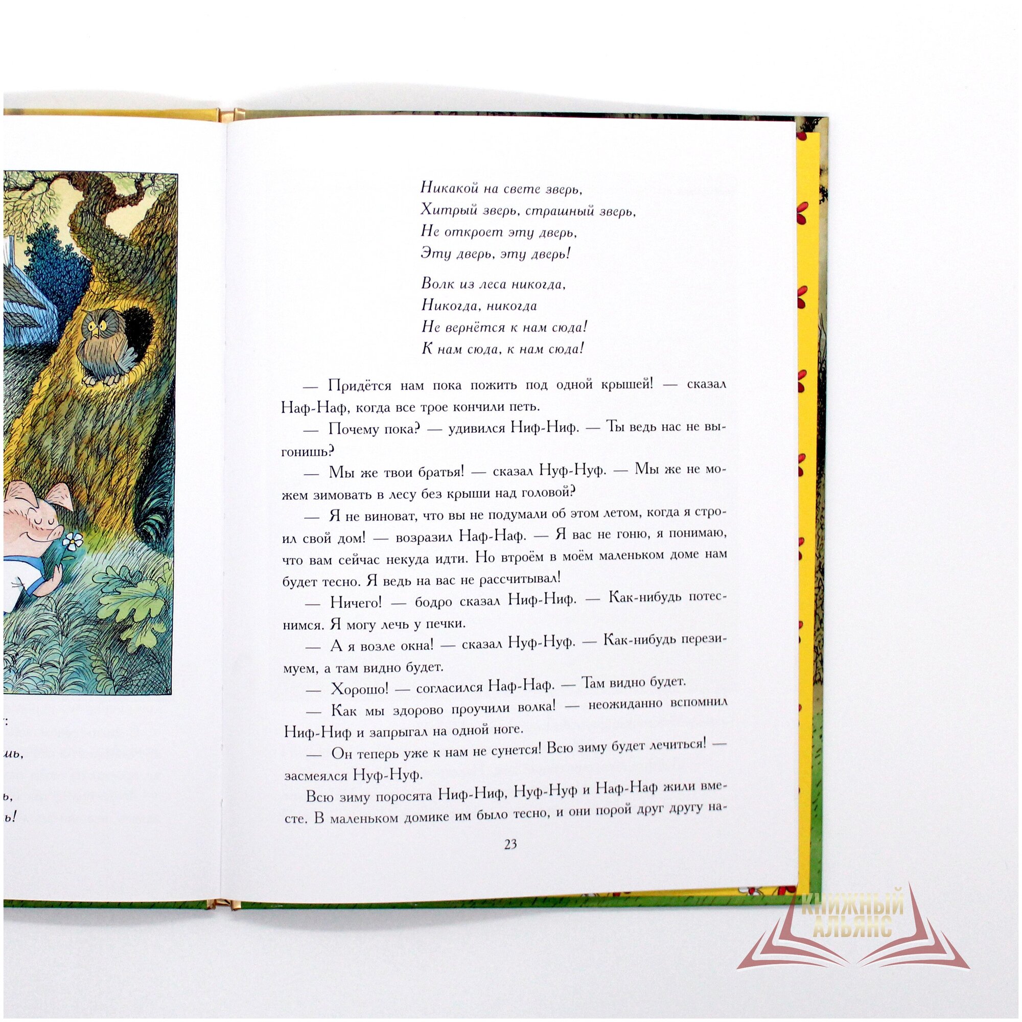 Сказка «Три поросёнка» пришла к нам из английской народной литературы. В советские годы писатель С. Михалков настолько точно пересказал её, что волк и поросята Ниф-Ниф, Нуф-Нуф и Наф-Наф сразу полюбились детской публике. Однако мало кто знает, что С. Михалков сочинил ещё и продолжение к «Трём поросятам» специально для очень любопытных детей. В этой книге представлен именно такой вариант сказки в рисунках народного художника РФ Виктора Александровича Чижикова.