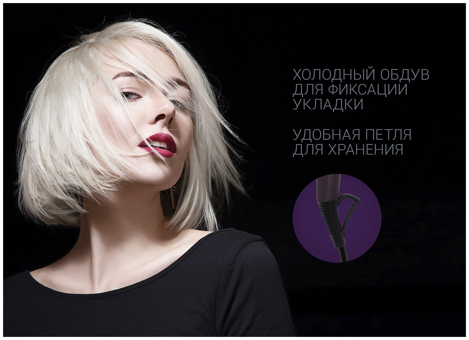Фен оснащен шестью режимами - вы сможете регулировать напор струи воздуха и изменять ее температуру от теплой до горячей. С помощью режима холодного воздуха вы надолго зафиксируете укладку.