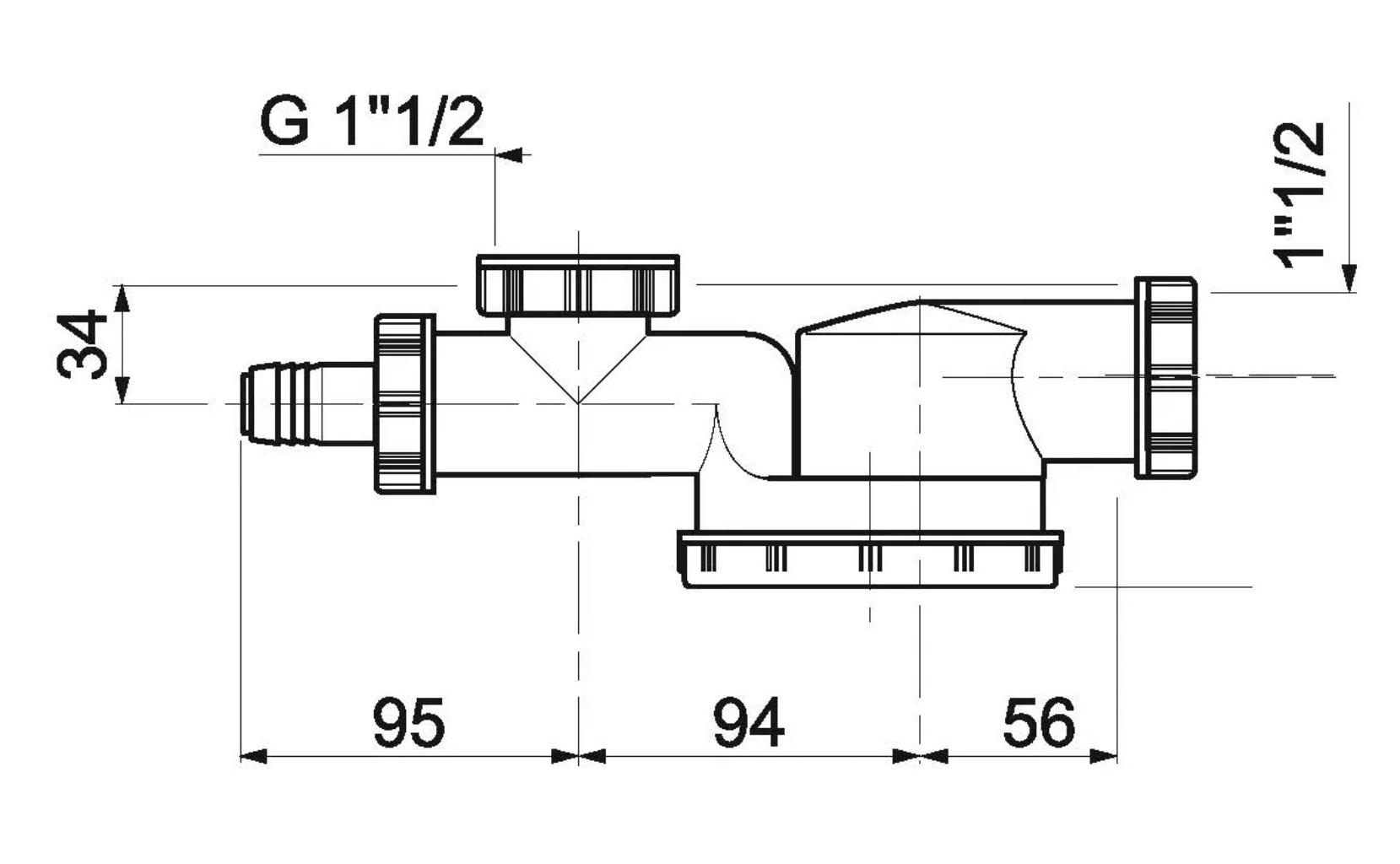 - Диаметр подключения: 1 1/2 , диаметр отвода: 40 мм