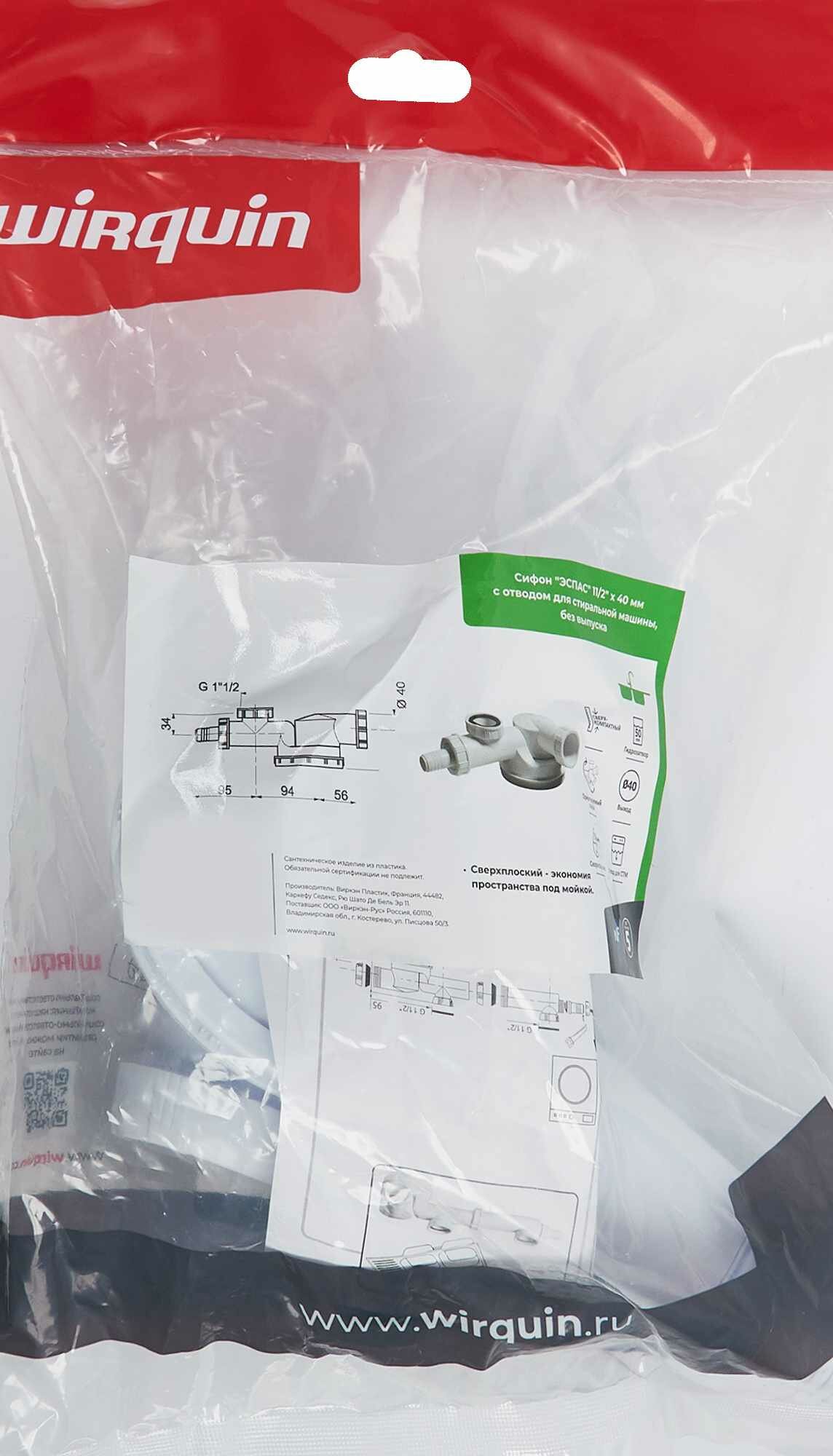 Сифоны для моек Wirquin Сифон для мойки ESPACE без выпуска 1 1/2"Х40