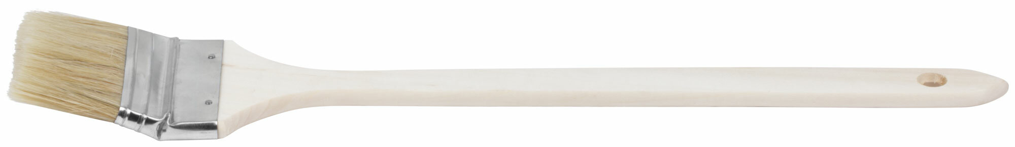Для работы со всеми видами лакокрасочных материалов. Используется для окраски батарей, работы в труднодоступных местах. Натуральная светлая щетина, некрашеная деревянная ручка.