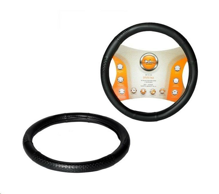 Оплетка на руль – это изделие, которое не только способно сохранить первоначальный вид автомобильного руля и уберечь его от повреждений, но и придать улучшенный вид автомобильному салону. Оплетка изготовлена в классической черной расцветке и имеет на поверхности нанесение в виде ромбовидного тиснения. Размер оплетки составляет 38 см.