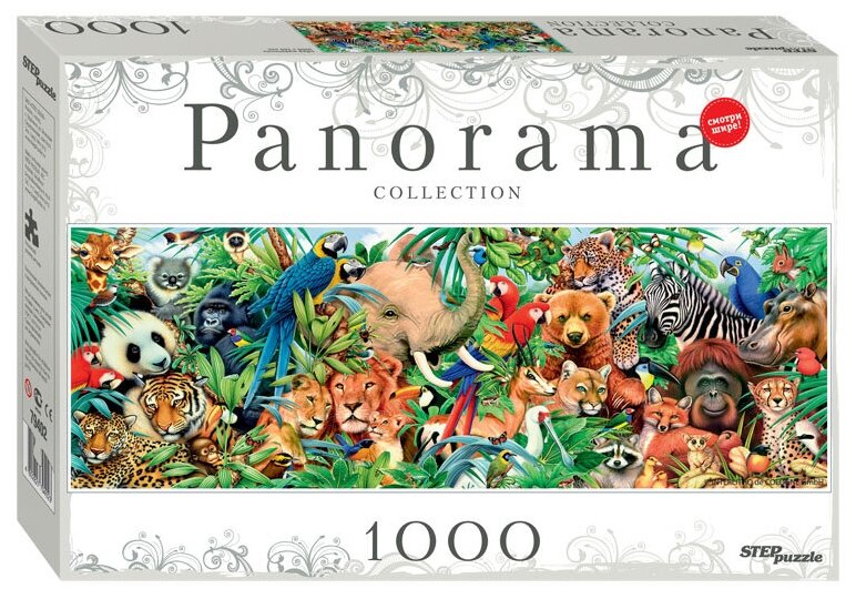 Коллекционный подарочный пазл-панорама. Собрав этот пазл, Вы получите картину-коллаж с представителями фауны со всех пяти континентов Земли. Пазл-панорама – это новый взгляд на привычные вещи. Великолепное качество исполнения, высокая точность в подгонке деталей.