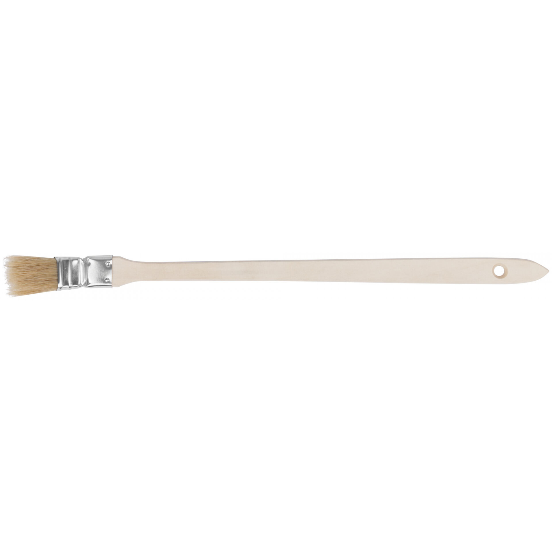 Для работы со всеми видами лакокрасочных материалов. Используется для окраски батарей, работы в труднодоступных местах. Натуральная светлая щетина, некрашеная деревянная ручка.