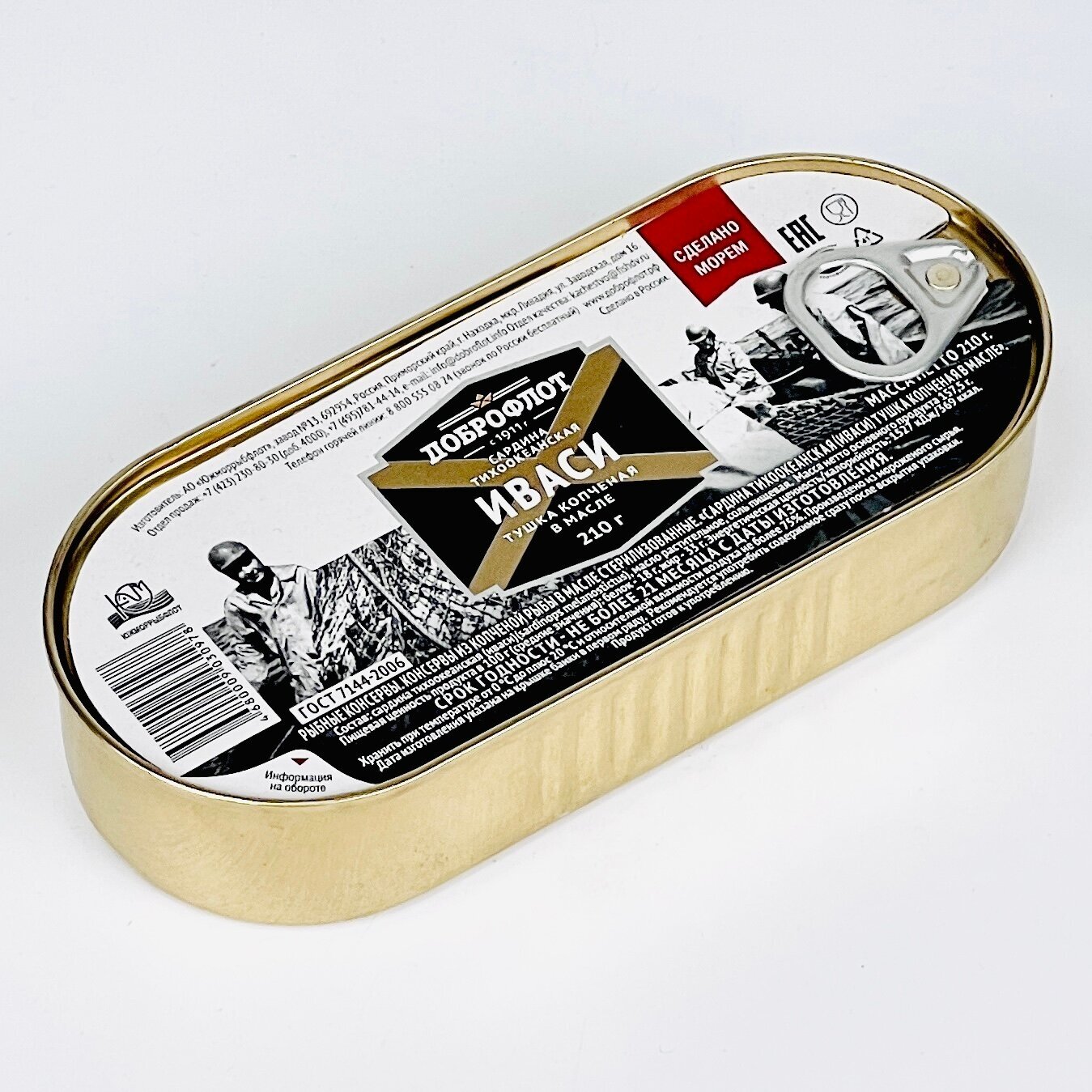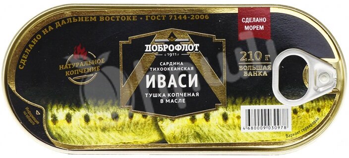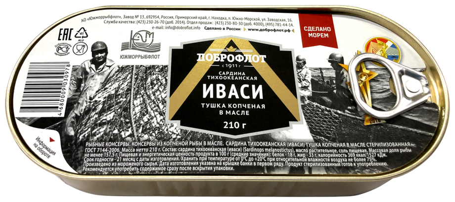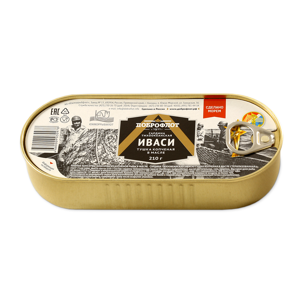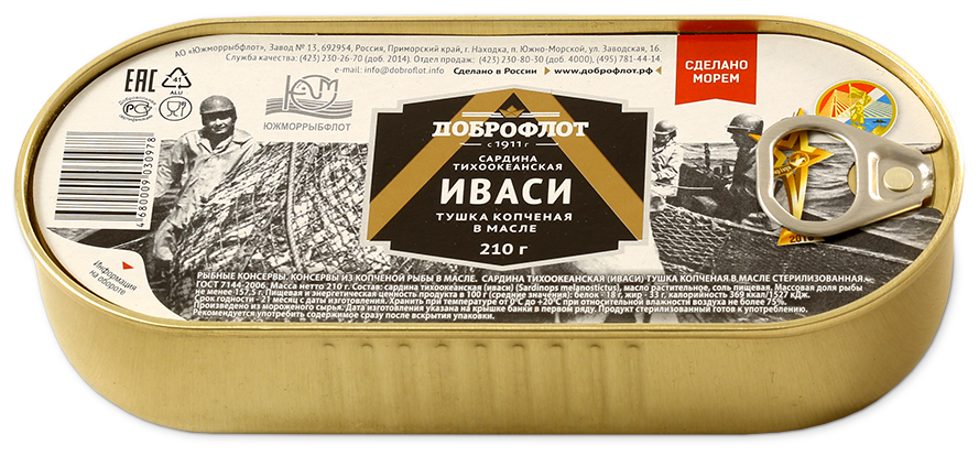 Сардина Доброфлот Иваси тихоокеанская копченая в масле 210г Южморрыбфлот