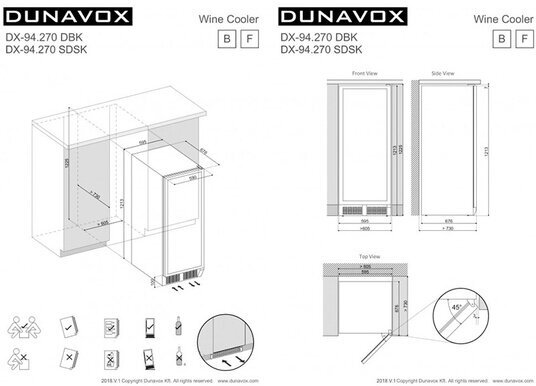 Dunavox (Дунавокс) является двухзональным встраиваемым холодильником для вина, работающего на основе компрессора. Охлаждение температуры воздуха в каждой из камер осуществляется динамическим типом. Утопленная ручка позволяет сохранить дизайн двери максимально разгруженным и строгим. Встроенный угольный фильтр устраняет в холодильнике любые посторонние запахи.