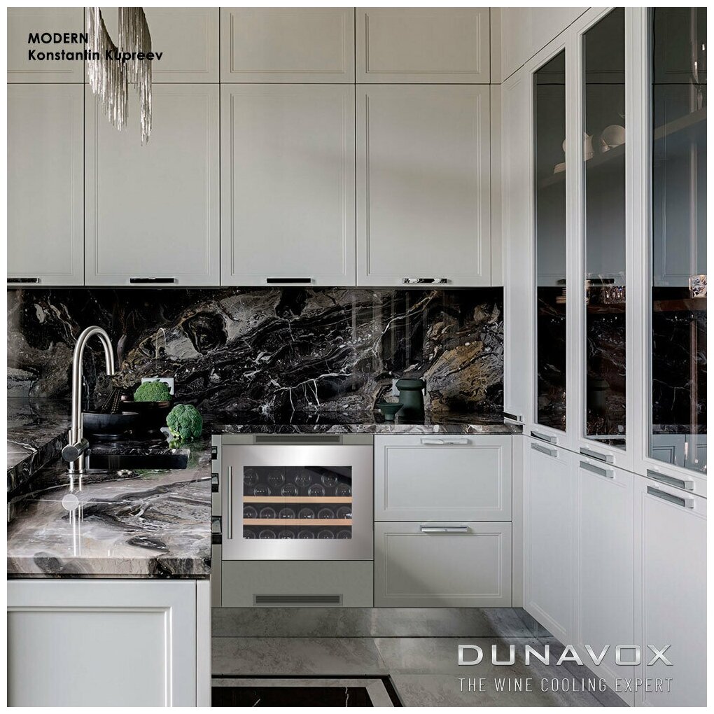 Встраиваемый винный шкаф Dunavox с регулируемой температурой в пределах от +5°C до +22°C позволяет хранить белые, красные и игристые вина. Он отлично впишется в интерьер современных кухонь или загородных домов. Модель обеспечивает правильное хранение винных напитков в оптимальных климатических условиях, сохраняя их вкусовые качества и насыщенный аромат. Уровень шума не превышает 39 дБ.